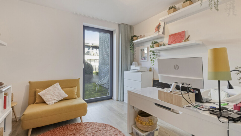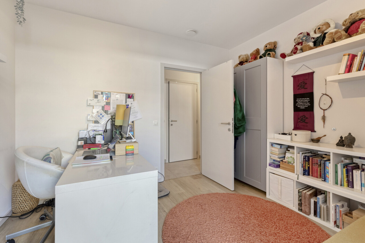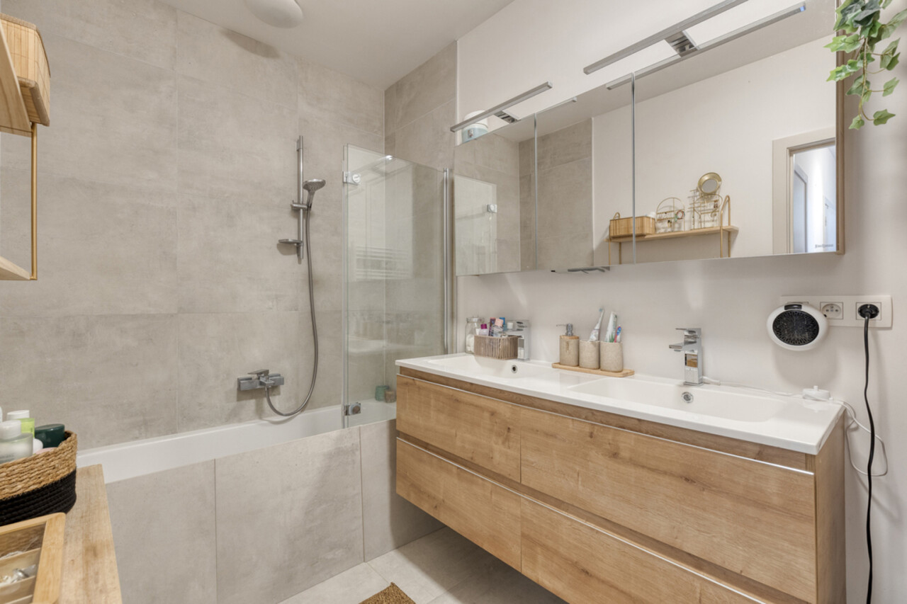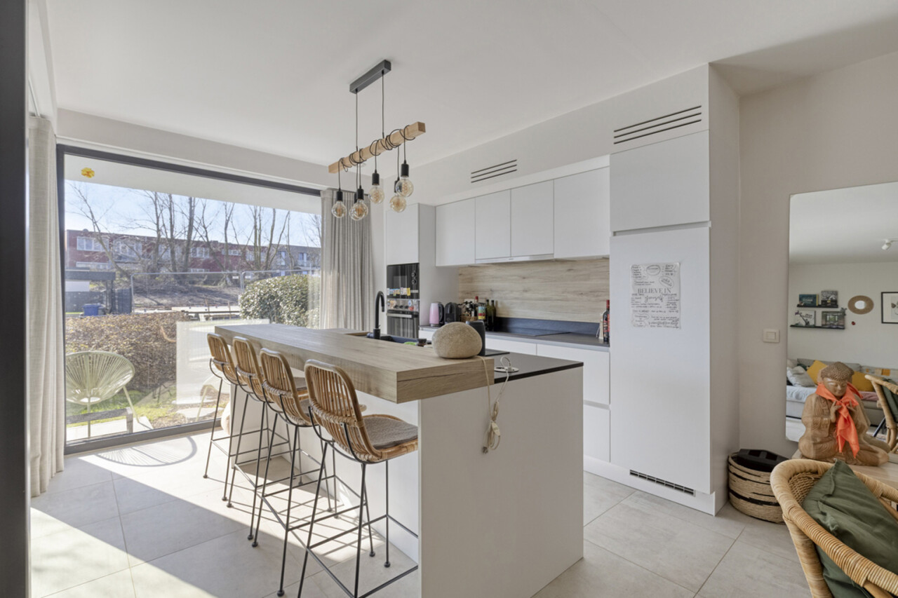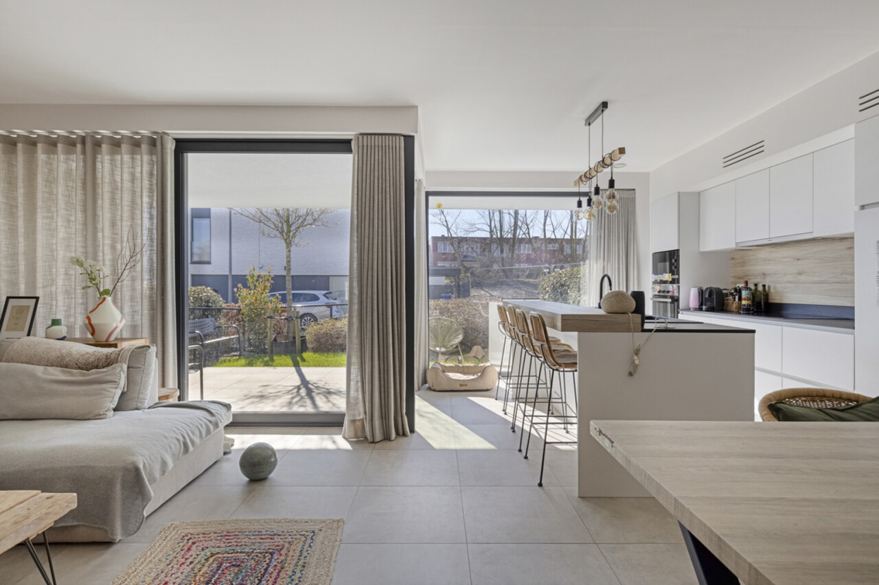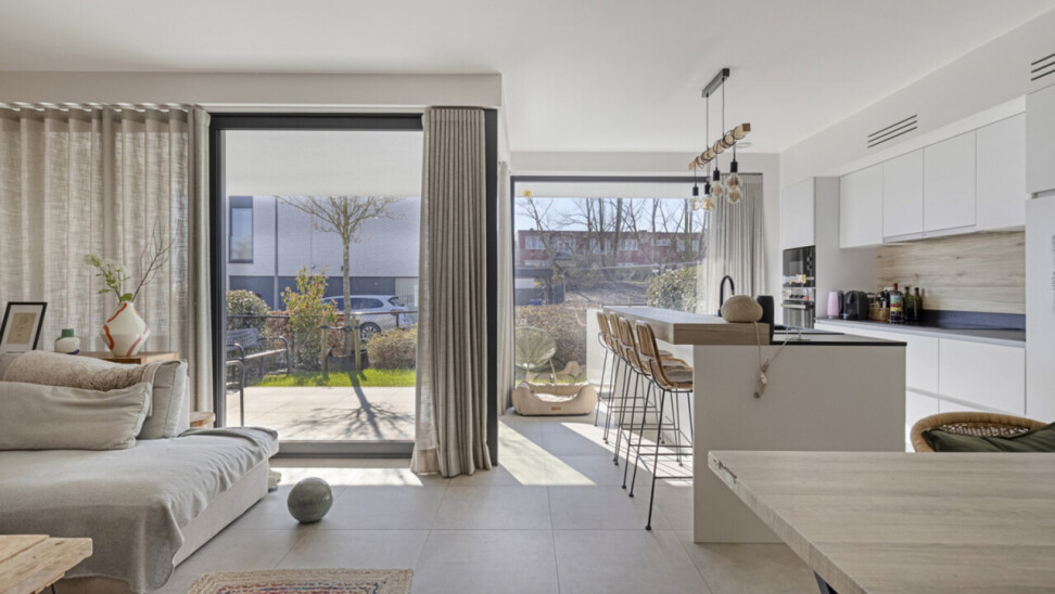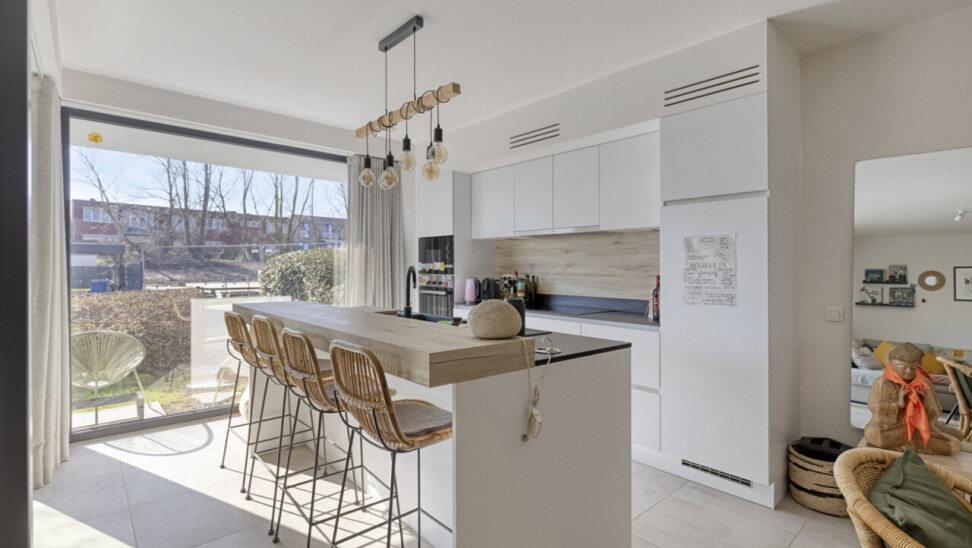 immo DAVID vous présente ce magnifique appartement deux chambres prêt à emménager, situé au rez-de-chaussée, d’une superficie de 95 m² avec terrasse. En entrant, vous accédez à un spacieux et lumineux séjour avec une cuisine ouverte entièrement équipée. Depuis le living, vous avez un accès direct au jardin de ville, fermée par un petit portail et située dans un quartier résidentiel calme. L’appartement dispose d’un toilette séparé, d’une buanderie pratique et d’une salle de bain équipée. Il comprend également deux chambres de 11 m² chacune. Depuis l’une des chambres, vous avez accès à la terrasse, offrant un espace extérieur supplémentaire. L’appartement comprend également un emplacement de parking intérieur ainsi qu’une cave privative. Il est équipé d’un chauffage par le sol, garantissant un chauffage agréable et économe en énergie. Les charges communes s’élèvent à 60 euros par mois. Disponible à partir du 1er mai 2026, cet appartement bénéficie d’une excellente situation à proximité du centre de Zellik, de Bruxelles et du Ring. À proximité immédiate se trouvent l’UZ Jette, le Laarbeekbos, les transports en commun, la piste cyclable rapide, les commerces, les écoles ainsi que diverses infrastructures sportives et de loisirs.