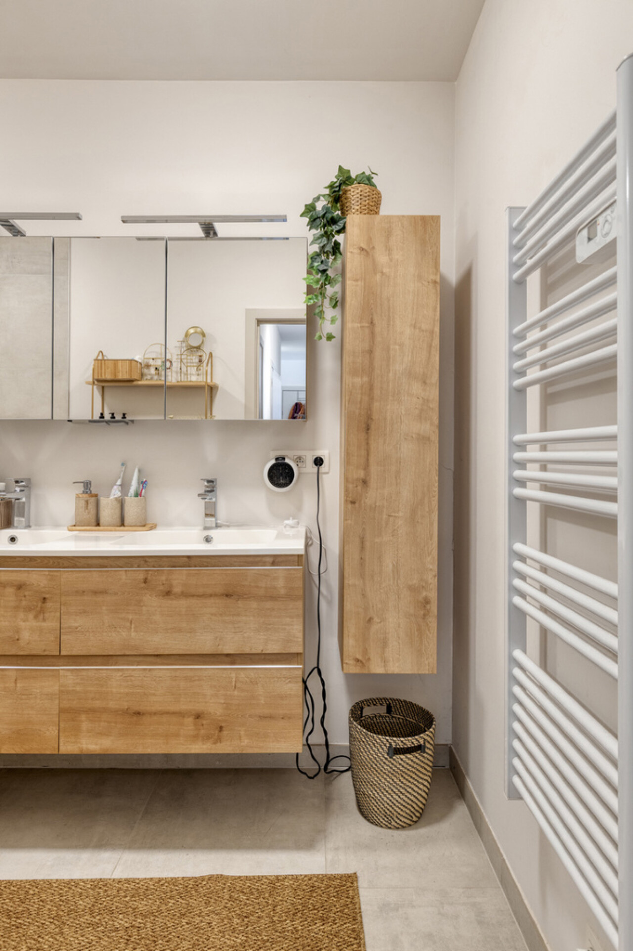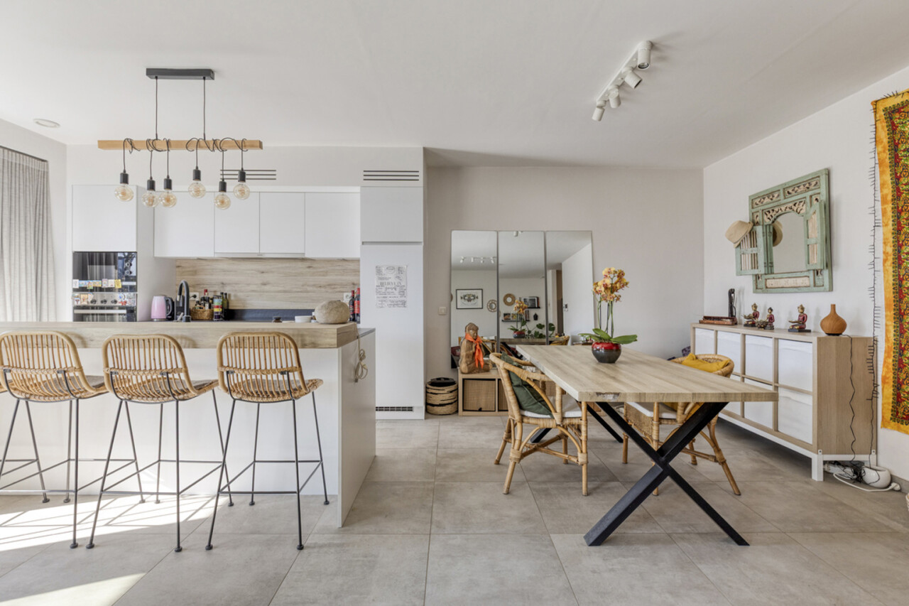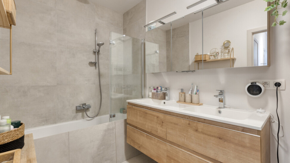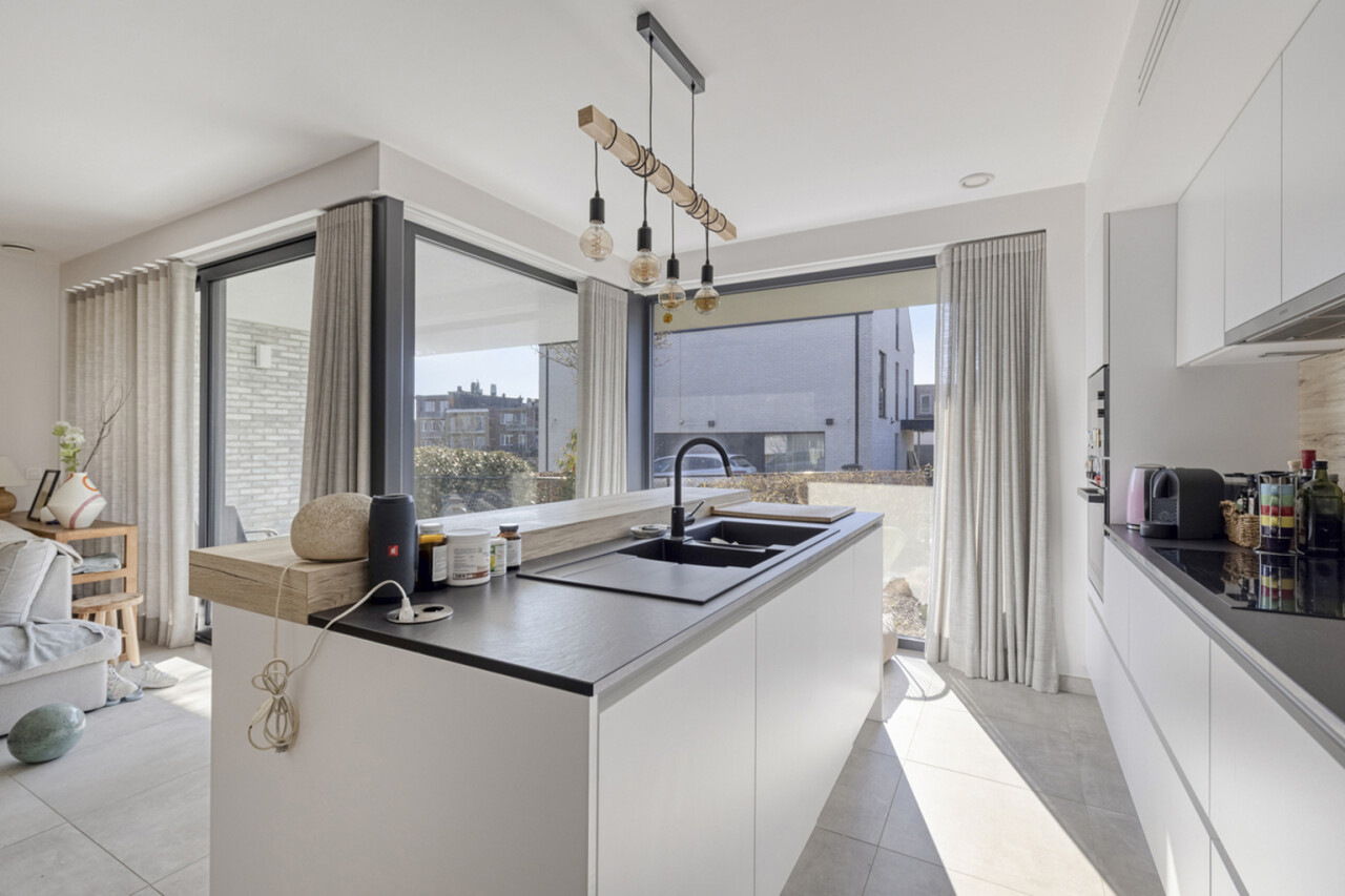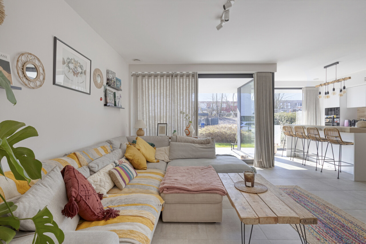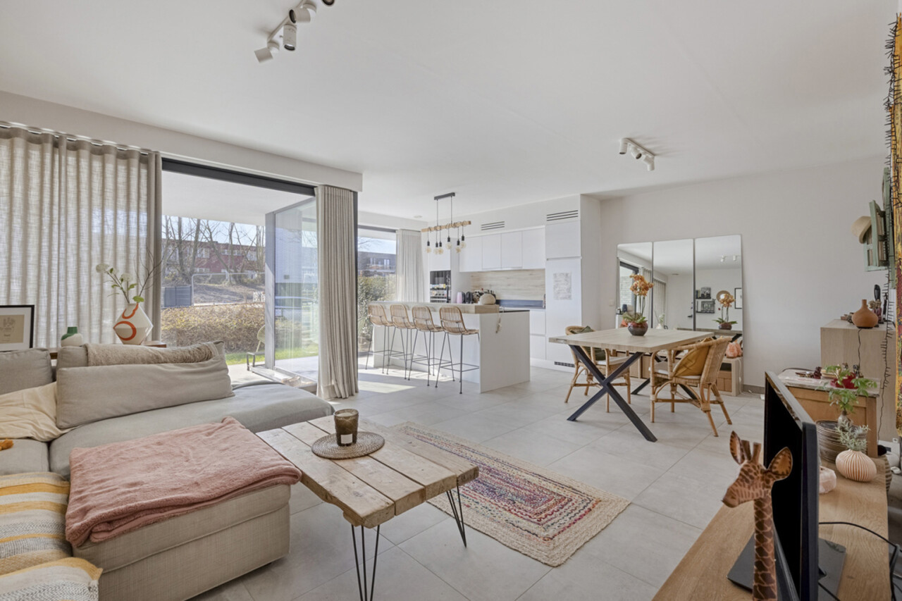 immo DAVID vous présente ce magnifique appartement deux chambres prêt à emménager, situé au rez-de-chaussée, d’une superficie de 95 m² avec terrasse. En entrant, vous accédez à un spacieux et lumineux séjour avec une cuisine ouverte entièrement équipée. Depuis le living, vous avez un accès direct au jardin de ville, fermée par un petit portail et située dans un quartier résidentiel calme. L’appartement dispose d’un toilette séparé, d’une buanderie pratique et d’une salle de bain équipée. Il comprend également deux chambres de 11 m² chacune. Depuis l’une des chambres, vous avez accès à la terrasse, offrant un espace extérieur supplémentaire. L’appartement comprend également un emplacement de parking intérieur ainsi qu’une cave privative. Il est équipé d’un chauffage par le sol, garantissant un chauffage agréable et économe en énergie. Les charges communes s’élèvent à 60 euros par mois. Disponible à partir du 1er mai 2026, cet appartement bénéficie d’une excellente situation à proximité du centre de Zellik, de Bruxelles et du Ring. À proximité immédiate se trouvent l’UZ Jette, le Laarbeekbos, les transports en commun, la piste cyclable rapide, les commerces, les écoles ainsi que diverses infrastructures sportives et de loisirs.