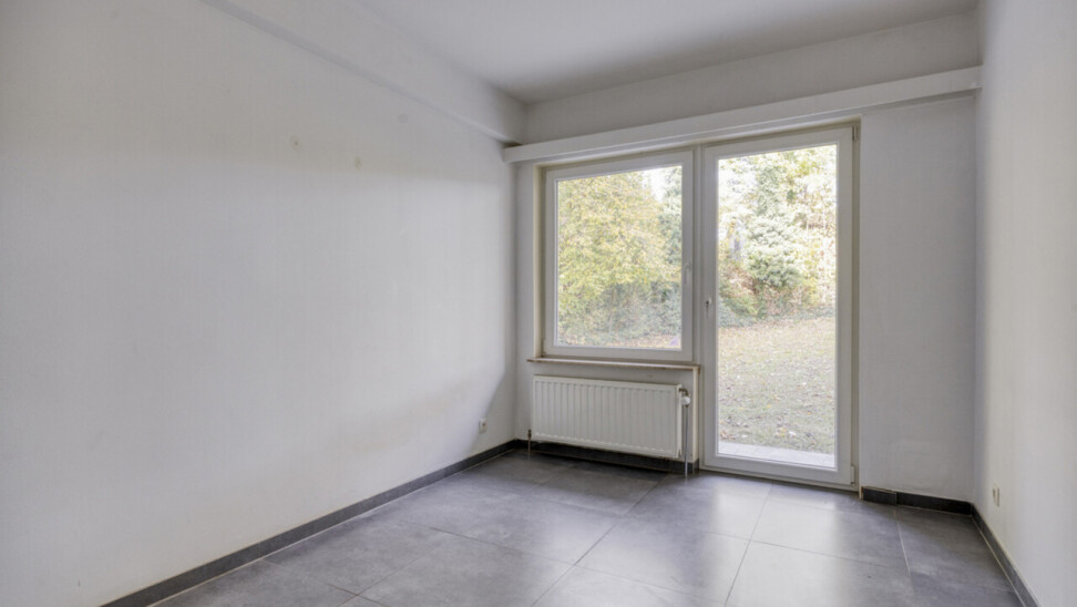 L’appartement dispose de deux chambres, dont une avec accès direct à la terrasse avec remise et au jardin agréable. Le spacieux séjour lumineux se prolonge harmonieusement avec la cuisine ouverte équipée et donne accès à un balcon convivial.