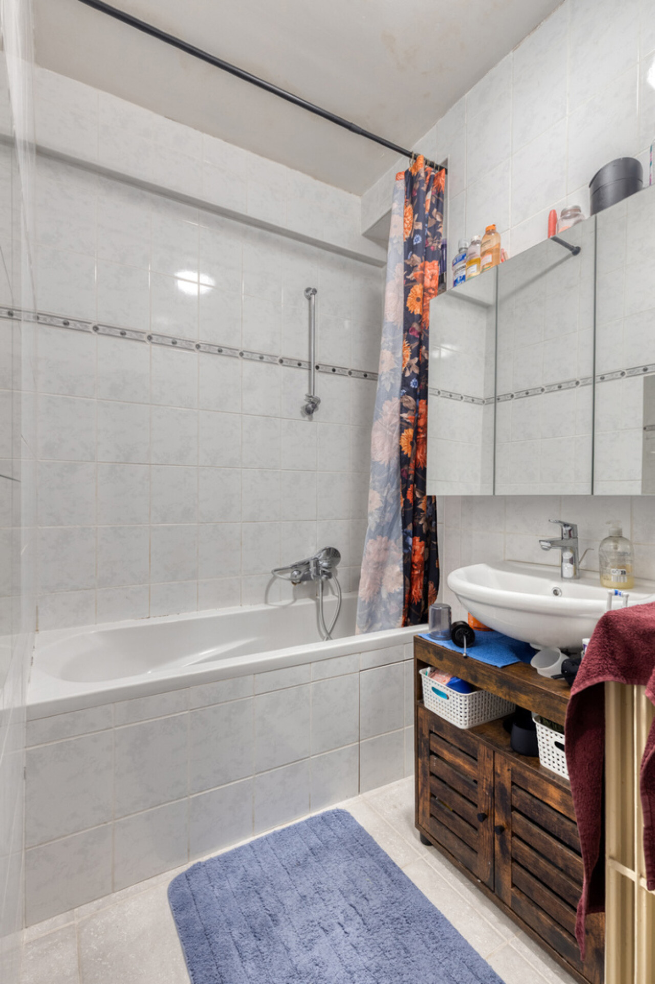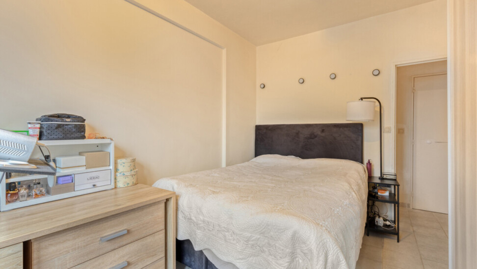Le séjour lumineux de 24 m² communique avec la cuisine fermée entièrement équipée de 6 m². L’appartement dispose également de deux chambres de 12 m² et 8 m², ainsi que d’une salle de bains moderne avec baignoire.