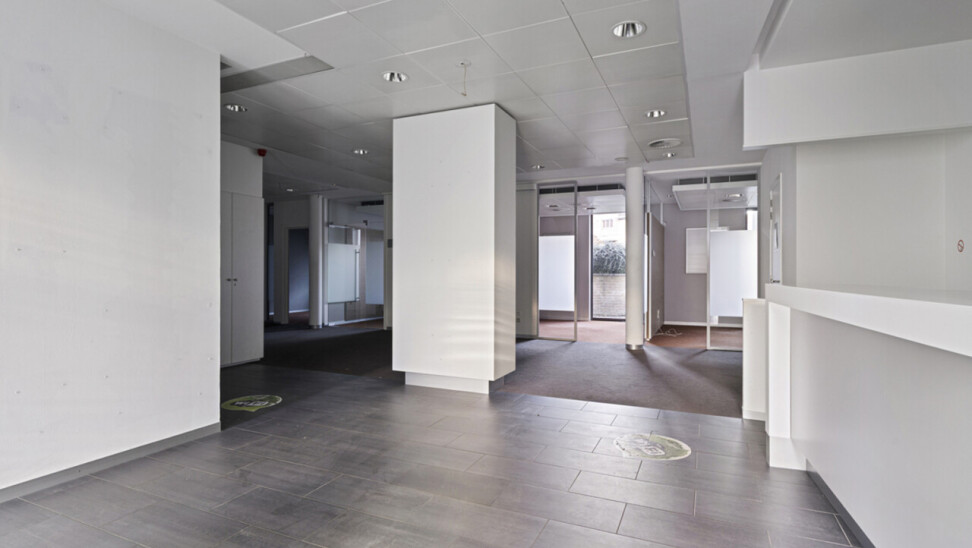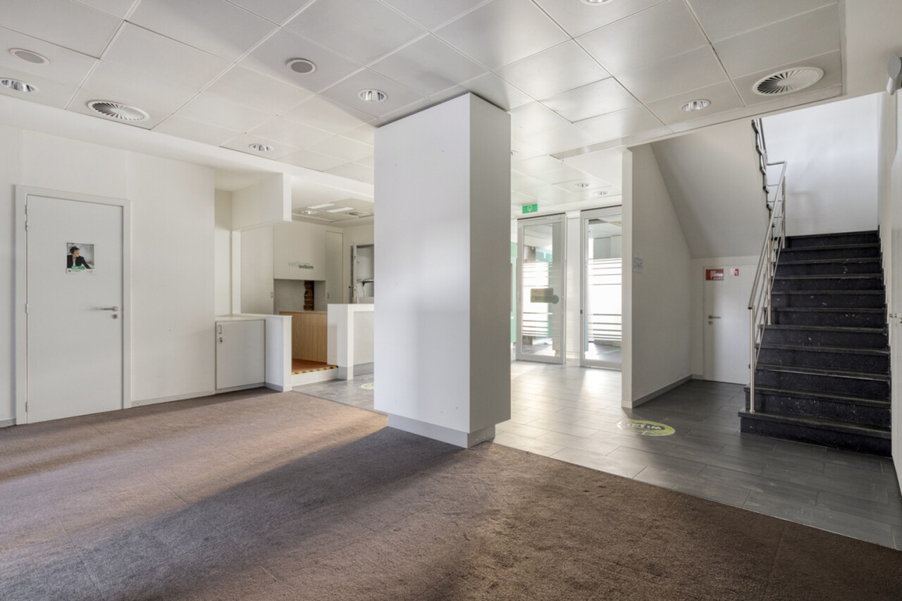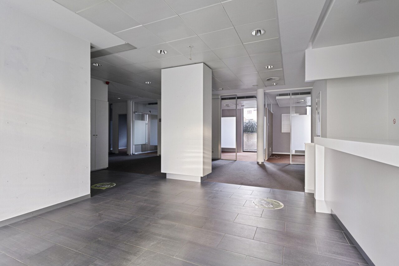 Le bien comprend, au rdc et au 1ier étage, une ancienne agence bancaire d’une superficie respective de 230 m² et 203 m². Au rdc se trouve une terrasse de 32 m² et, au premier étage, une spacieuse terrasse de 53 m². Le bâtiment dispose également d’un espace grenier de 32 m².