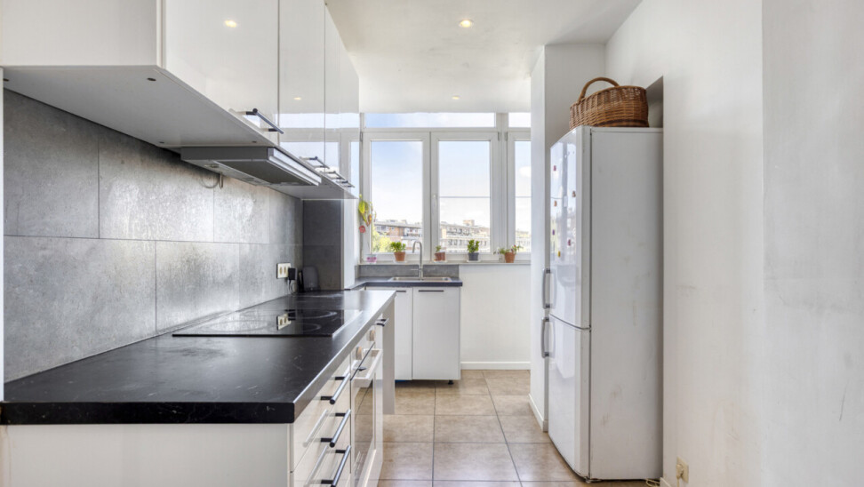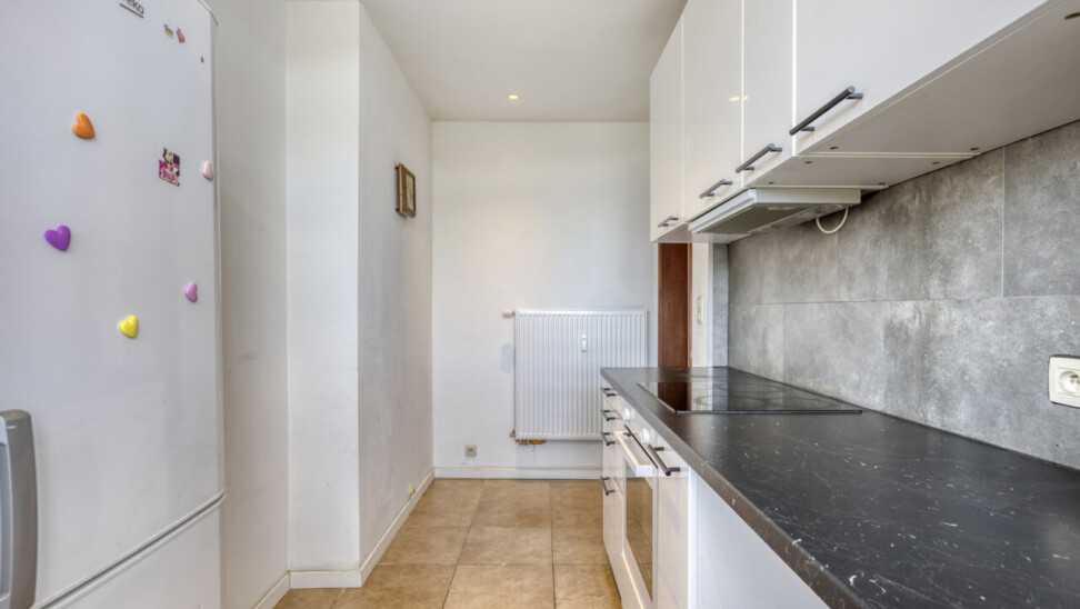 Bij het binnenkomen word je verwelkomd in een inkomhal met videofoon en geblindeerde voordeur. De ruime, lichtrijke living van 32 m² biedt een aangename leefruimte. Aansluitend bevindt zich een volledig ingerichte keuken, voorzien van alle toestellen, en een praktische washoek.