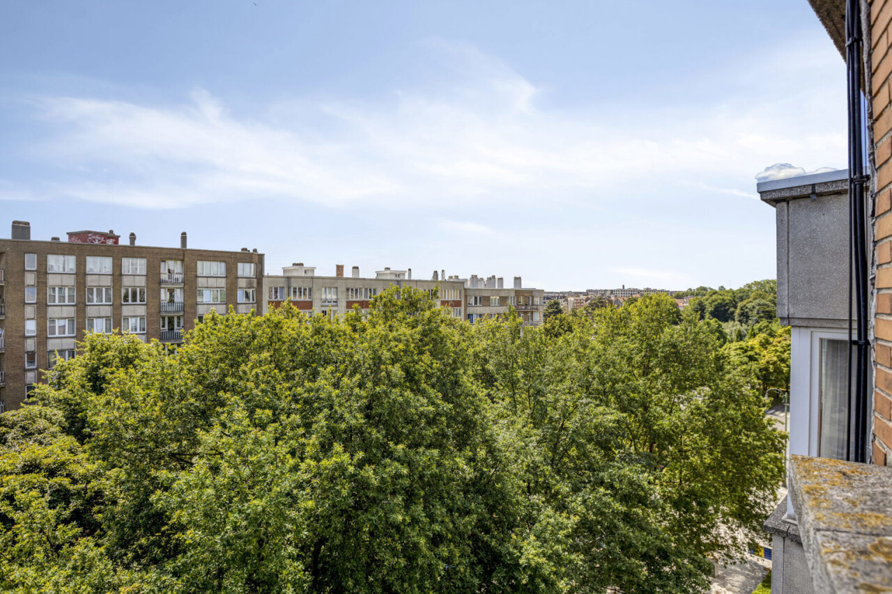 Ontdek dit prachtig gerenoveerde appartement op de vijfde verdieping, met een adembenemend uitzicht over de Place de Bastogne. De hoofdinkom is beveiligd en het gebouw beschikt over een lift, waardoor je vlot en veilig toegang hebt.