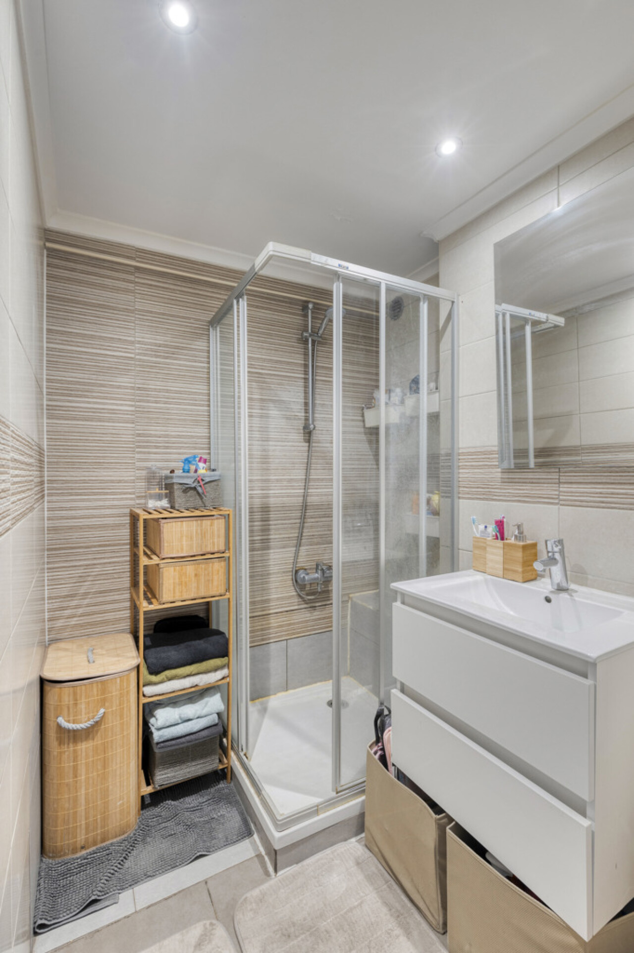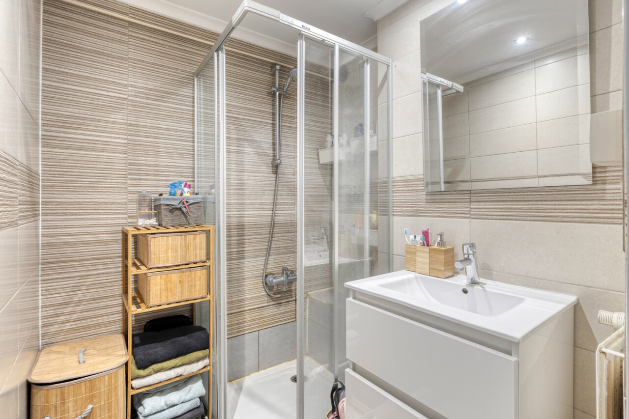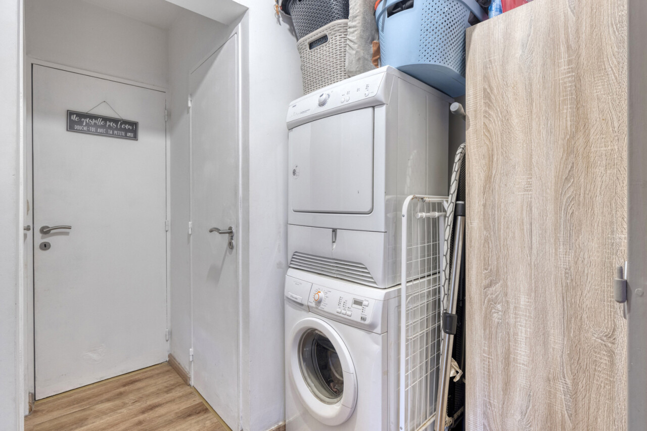 De inkomhal geeft toegang tot alle ruimtes: een aparte washoek in de nachthal, een modern apart toilet en een stijlvolle douchekamer. De twee slaapkamers meten respectievelijk 8 m² en 12 m², ideaal voor een hoofd- en logeerkamer, bureau of hobbyruimte.