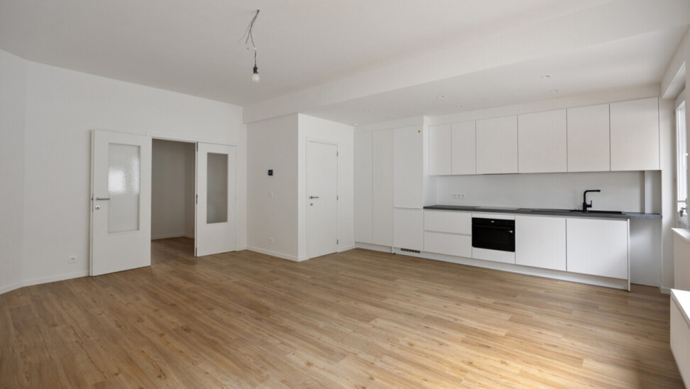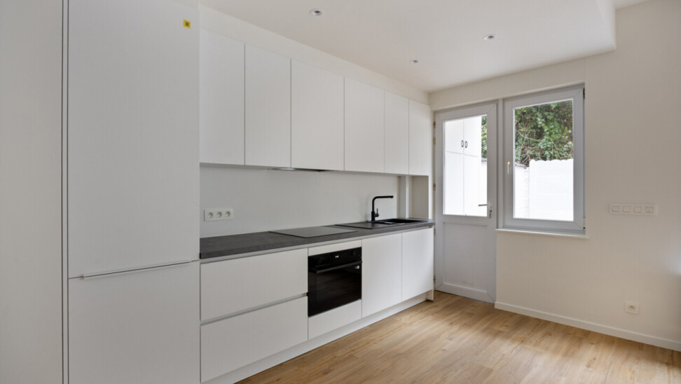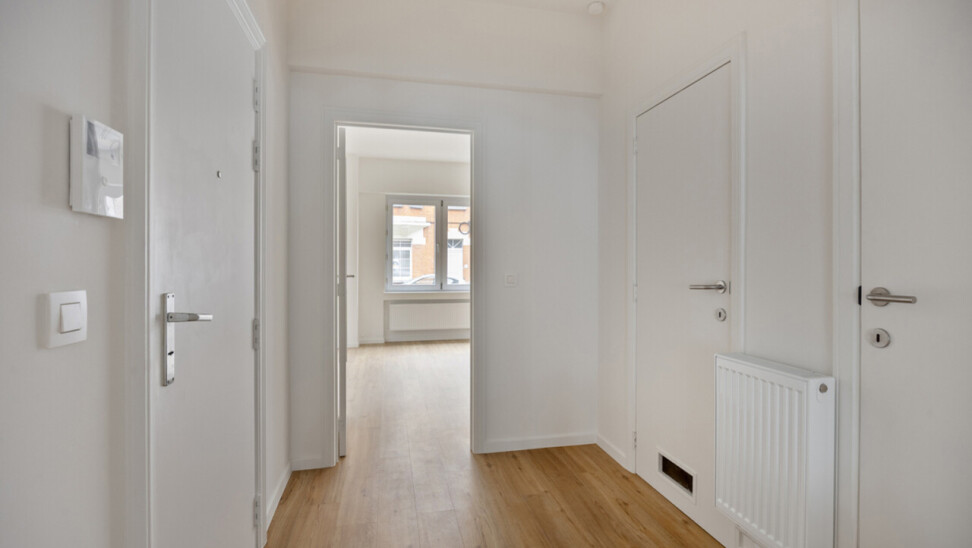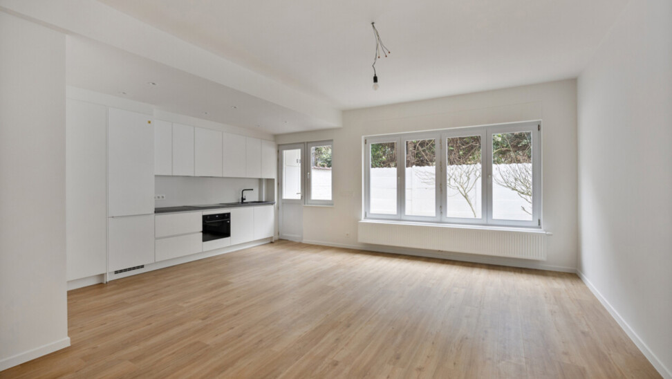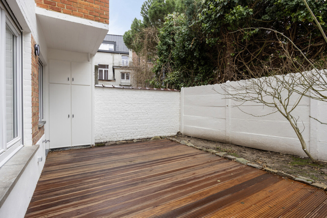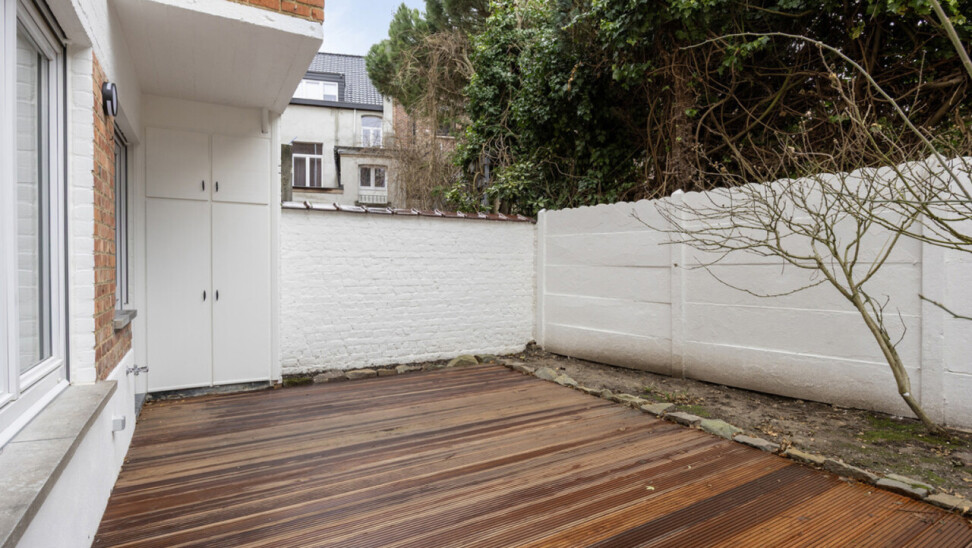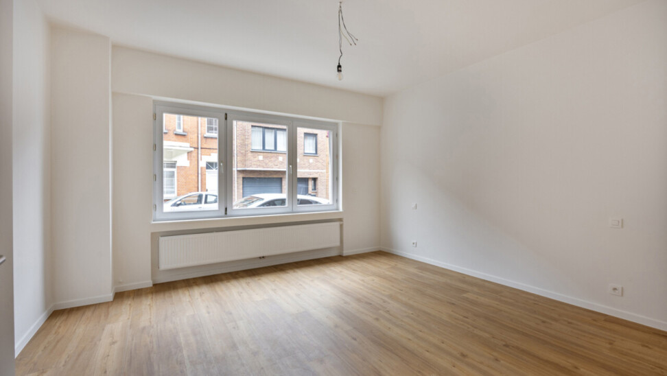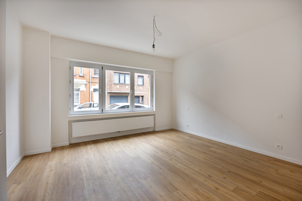 immo DAVID stelt voor: dit volledig gerenoveerde gelijkvloerse éénslaapkamerappartement met een aangename, zuidgerichte stadstuin. Het appartement beschikt over een mooie, lichtrijke leefruimte met een open en volledig ingerichte keuken; aansluitend is er een praktische berging met aansluitingen voor wasmachine en droogkast, ideaal voor comfortabel en hedendaags wonen. Via de inkomhal bereikt u de ruime slaapkamer van 17 m², de badkamer en het aparte toilet. Het appartement is voorzien van een gepantserde voordeur en elektrische rolluiken.