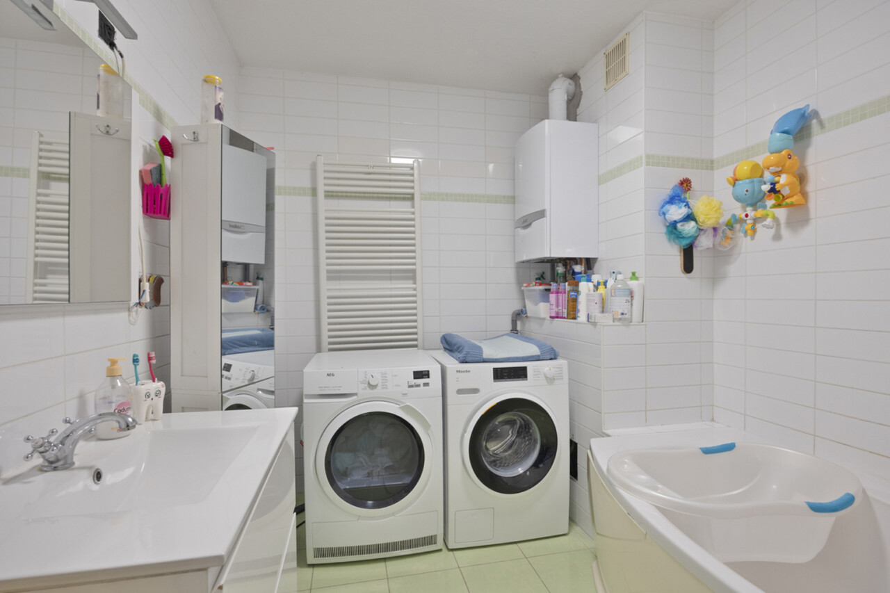 immo DAVID stelt voor: instapklaar modern, lichtrijk hoekappartement met één slaapkamer op toplocatie in Zellik. De gezellige living geniet van overvloedig daglicht, aansluitend vind je een ingerichte keuken, ruime slaapkamer van 12 m² en een badkamer met aansluiting voor wasmachine en droogkast. Apart toilet met hangtoilet aanwezig. Inclusief uitzonderlijk ruime inpandige garage van 39 m² met twee autostaanplaatsen vóór de garage. Het gebouw is degelijk opgetrokken in beton, met betonnen trap en lift. Verwarmingsketel vernieuwd in 2019, inkomhal recent gerenoveerd. Nabij centrum, Brussel, winkels, scholen, openbaar vervoer, fietssnelweg, Laerbeekbos en UZ Jette. Uitstekend EPC B – comfortabel wonen op een topligging!