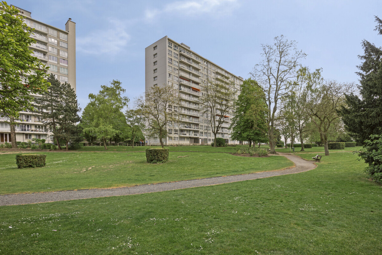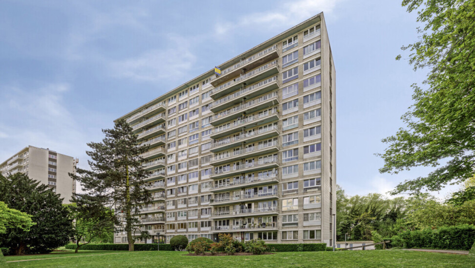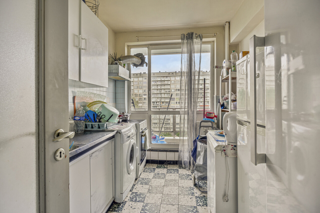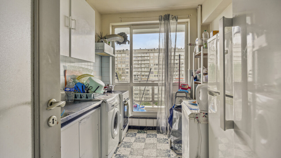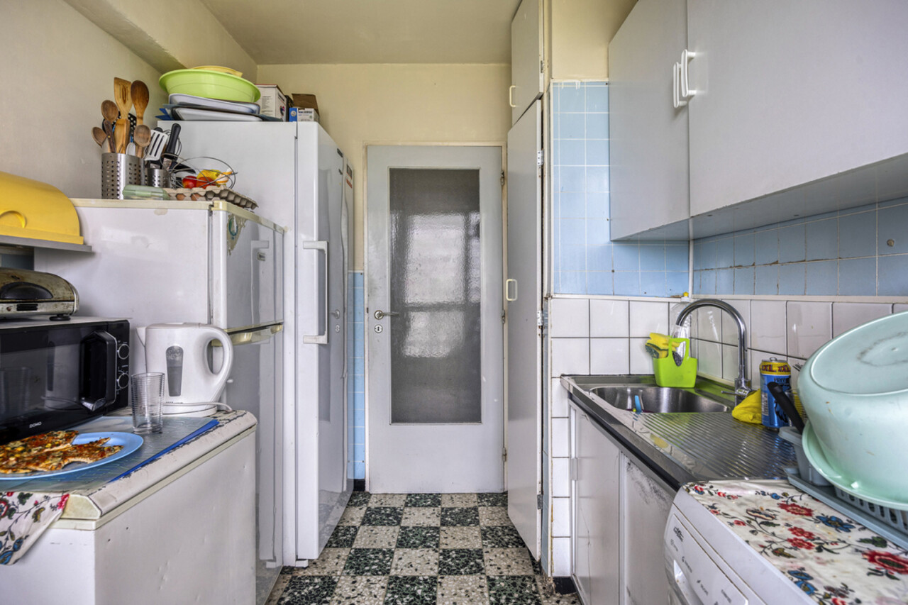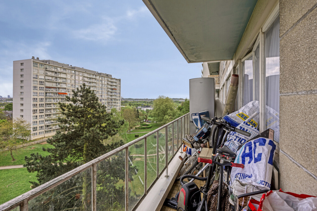 Op het zevende verdiep bevindt zich dit op te frissen, lichtrijke tweekamerappartement met privatieve kelder.