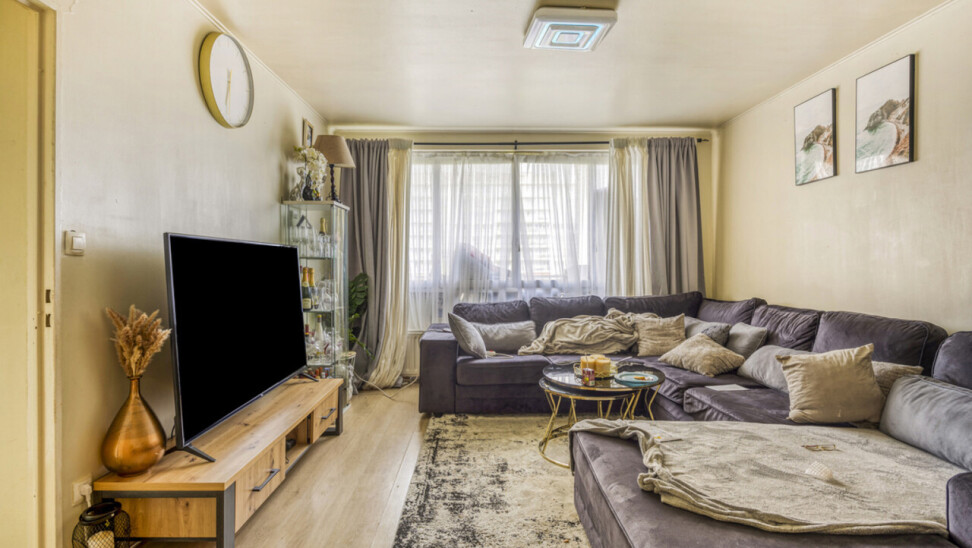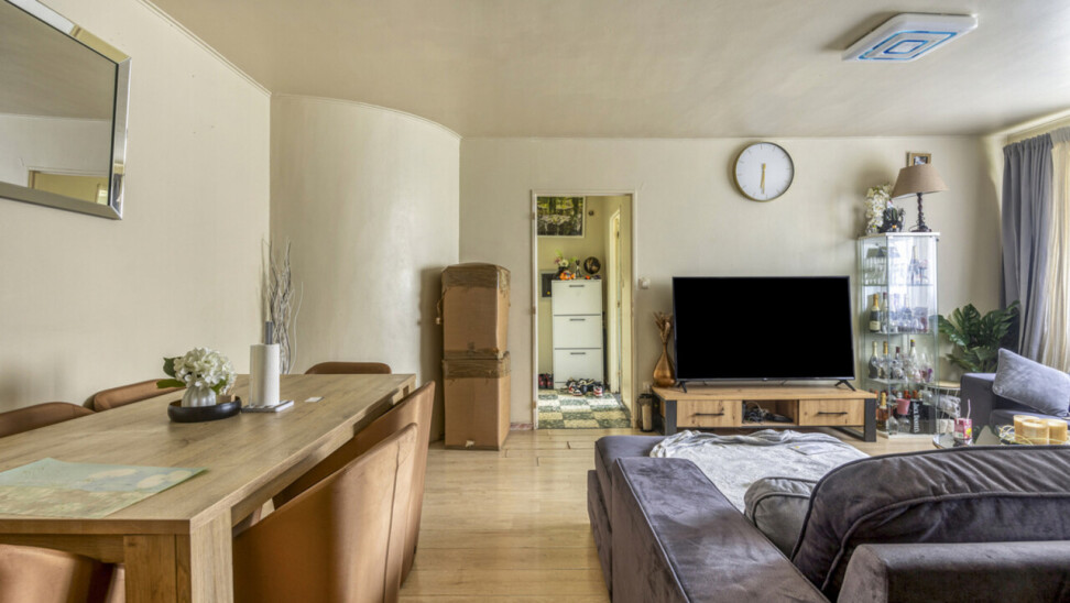 Het appartement geniet van veel natuurlijke lichtinval en ademt een warme, huiselijke sfeer.