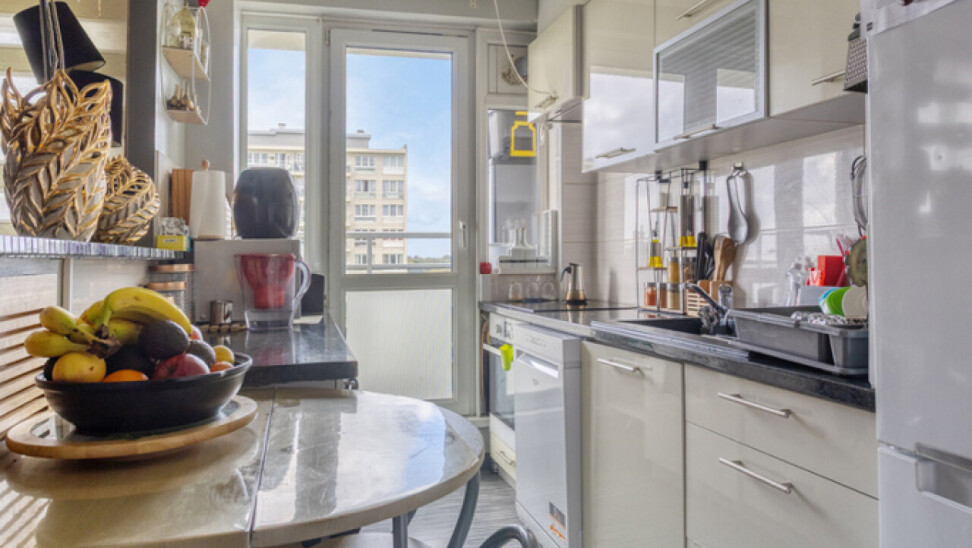Vanuit de ruime leefruimte (24 m²) met open keuken geniet je van een uniek, onbelemmerd uitzicht over het park.
