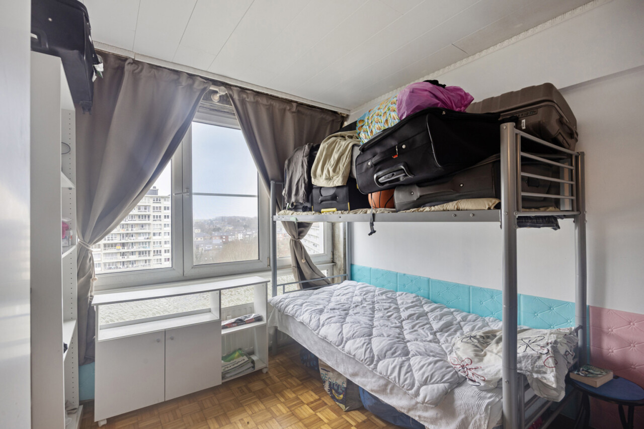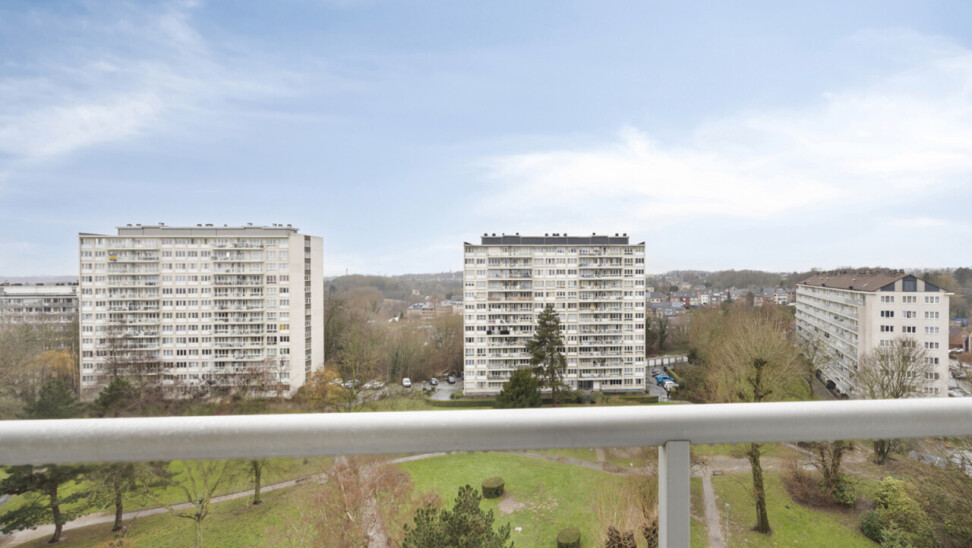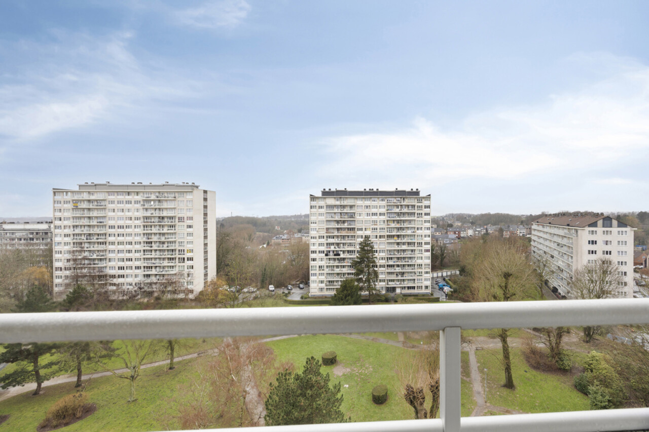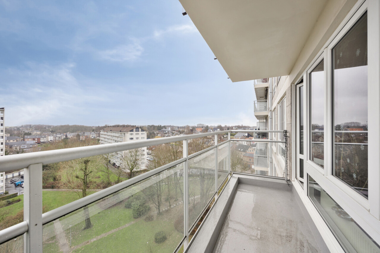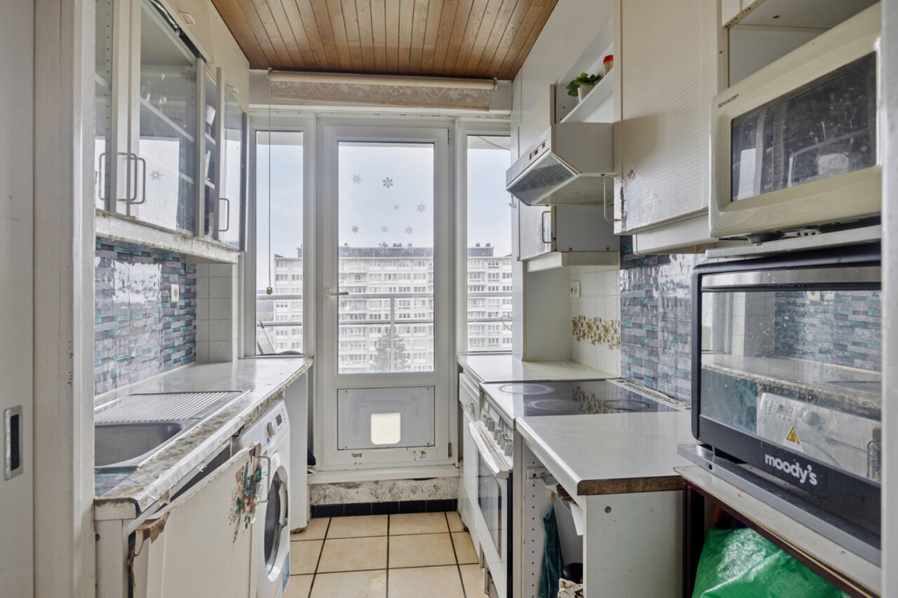 Lichtrijk tweekamerappartement op de 9e verdieping, deels te renoveren, met een privékelder en een zuidwestgericht terras van 6 m² dat een prachtig uitzicht op het park biedt.