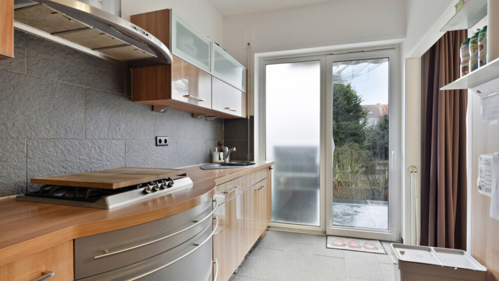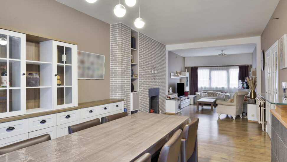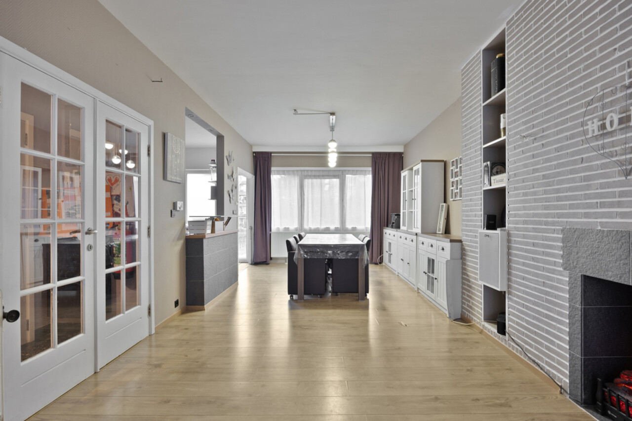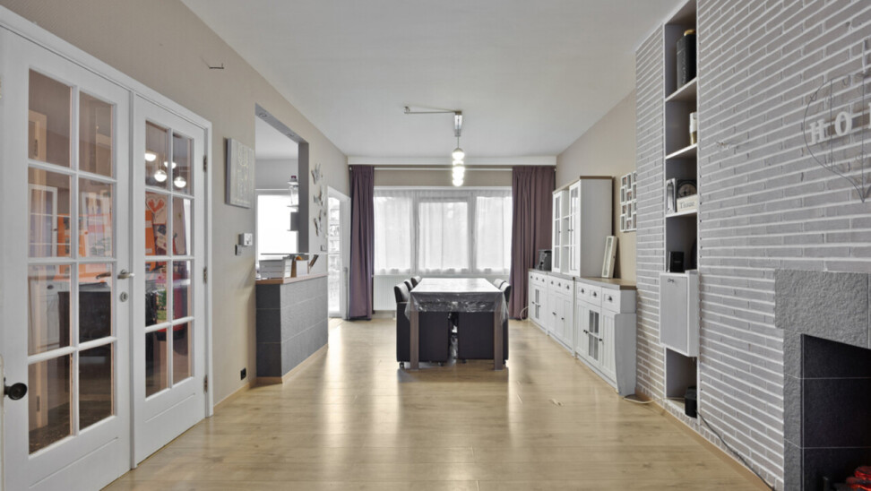 immo DAVID stelt voor: instapklare bel-étagewoning op topligging! Ontdek samen met ons deze praktisch ingedeelde, ruime en lichtrijke 2-gevelwoning van het type bel-étage, ideaal gelegen in een gegeerde omgeving. Via de ruime inkomhal betreedt u de woning, met toegang tot een apart gastentoilet en een bijkomende polyvalente ruimte die momenteel is ingericht als “mancave” en uitgeeft op de tuin. Deze kamer kan zonder problemen worden (her)ingericht als extra slaapkamer, bureau of hobbyruimte. De inpandige garage vormt een absolute troef, aangezien slechts weinig woningen in de buurt hierover beschikken – een element dat dit pand nog aantrekkelijker en unieker maakt. Op de eerste verdieping bevindt zich de ruime leefruimte 46m² met een open, volledig ingerichte keuken. Aansluitend geniet u van een aangenaam, zuid gericht terras. Verder vindt u op dit niveau ook de badkamer. De tweede verdieping telt twee volwaardige slaapkamers en een praktische berging. De onderhoudsvriendelijke tuin biedt een fijne buitenruimte zonder dat u veel tijd kwijt bent aan tuinonderhoud