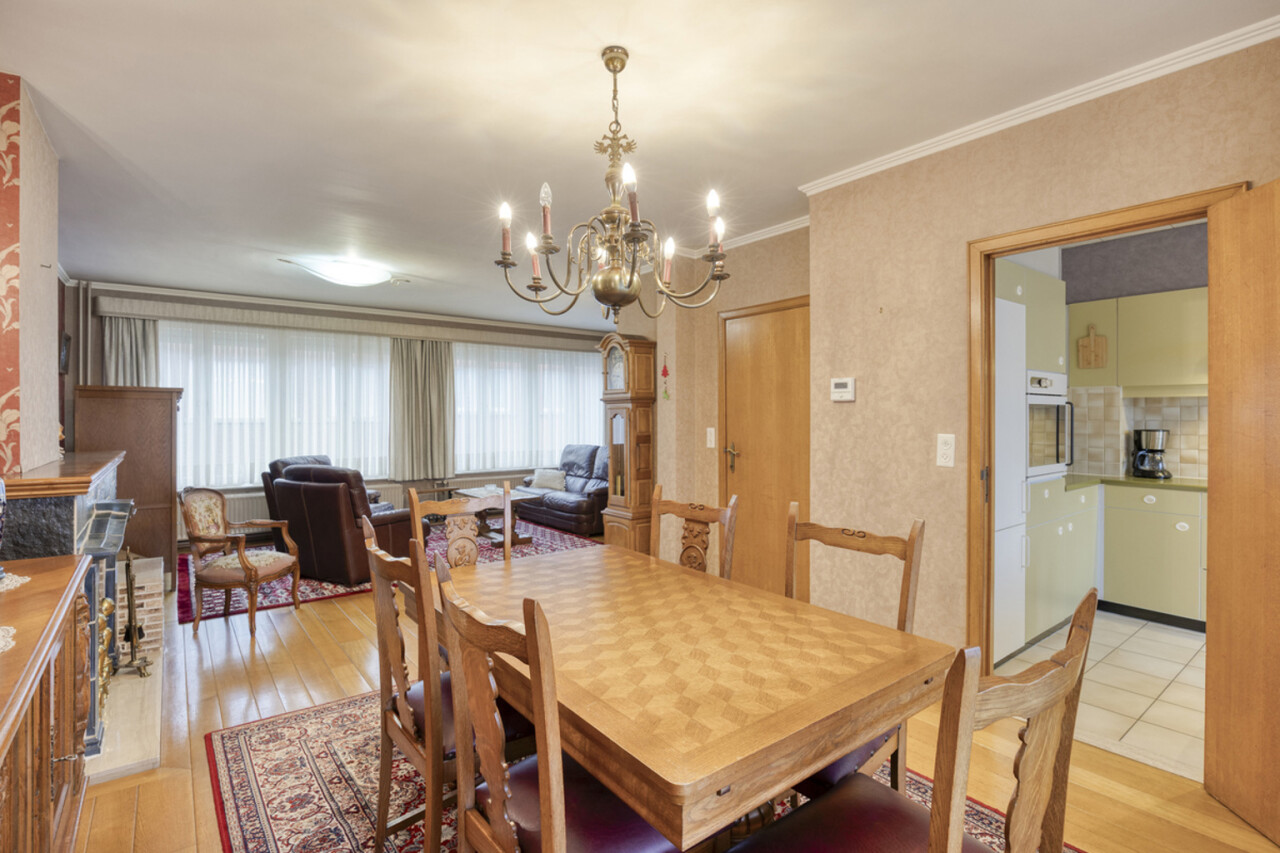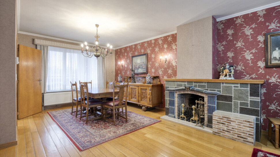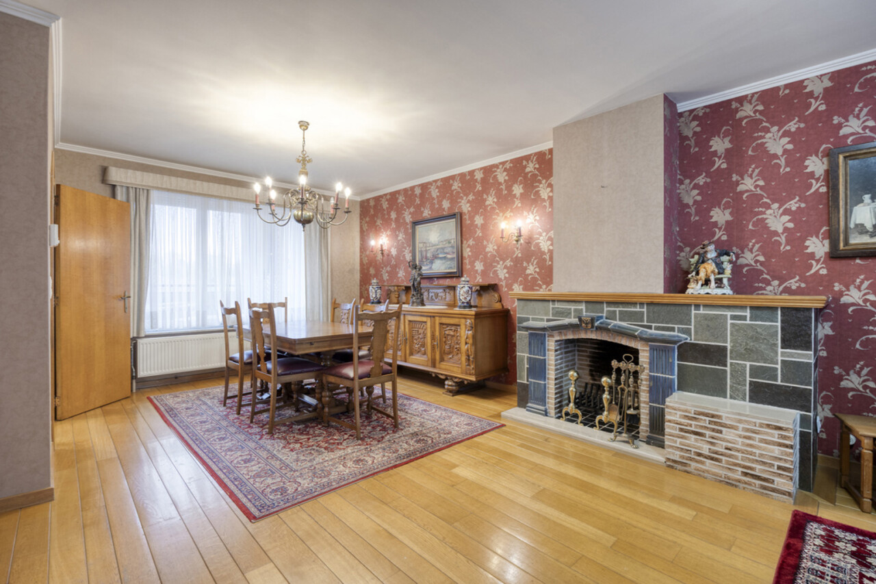 Op de eerste verdieping bevindt zich een lichtrijke living met warme parketvloer en gezellige open haard, die een aangename en huiselijke sfeer creëert. Grote raampartijen zorgen voor veel licht en een ruim gevoel. Aan de straatzijde zijn elektrische rolluiken voorzien voor extra comfort en privacy. De gesloten, volledig ingerichte keuken sluit mooi aan op de leefruimte. Zowel vanuit de keuken als de living heeft u toegang tot het terras van 26 m² met praktische berging, ideaal voor een ontbijt in de zon of een gezellige avond met familie en vrienden.