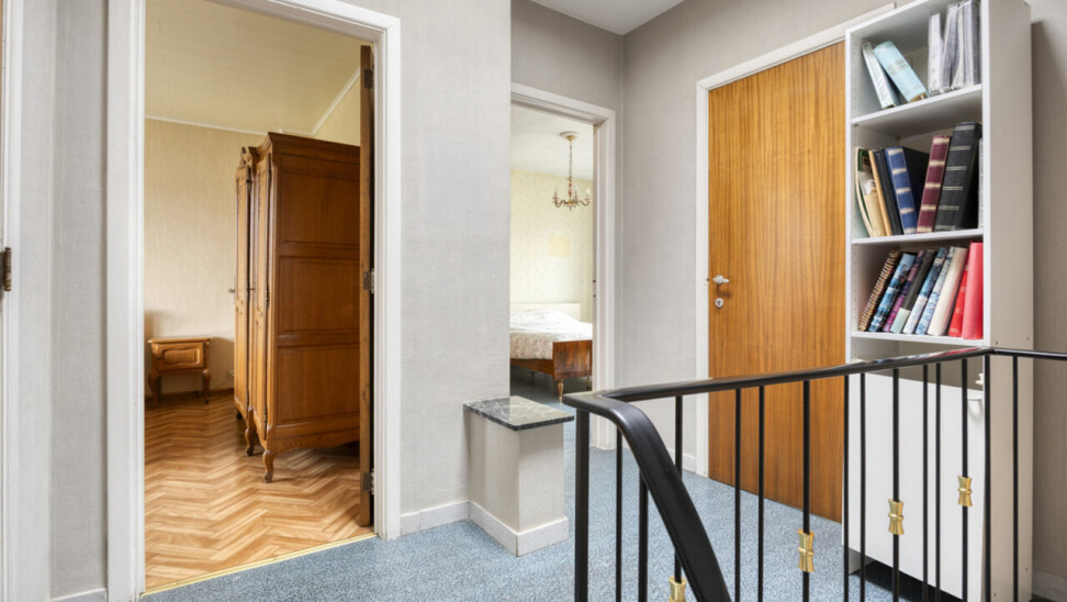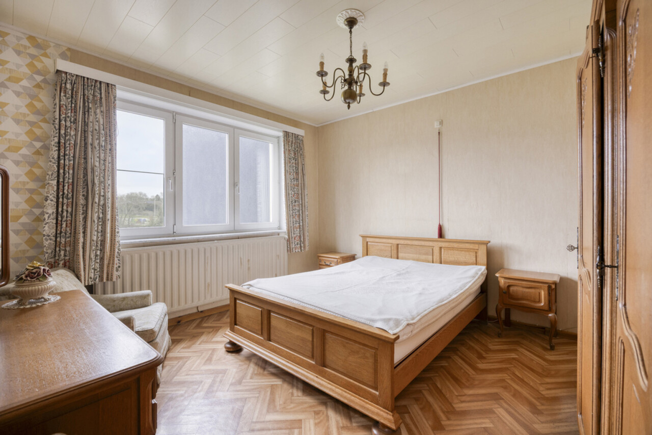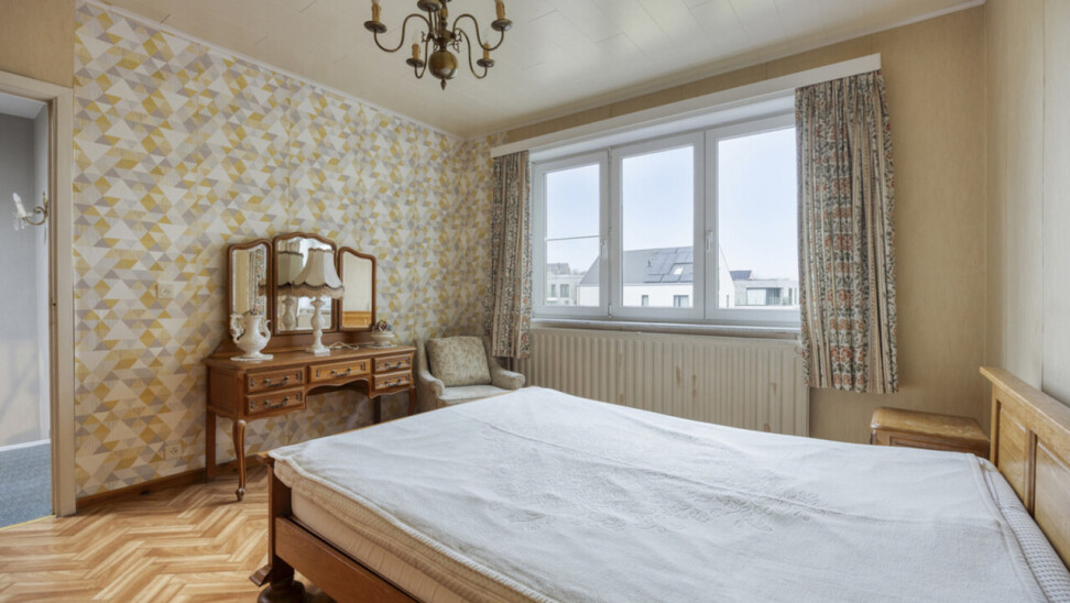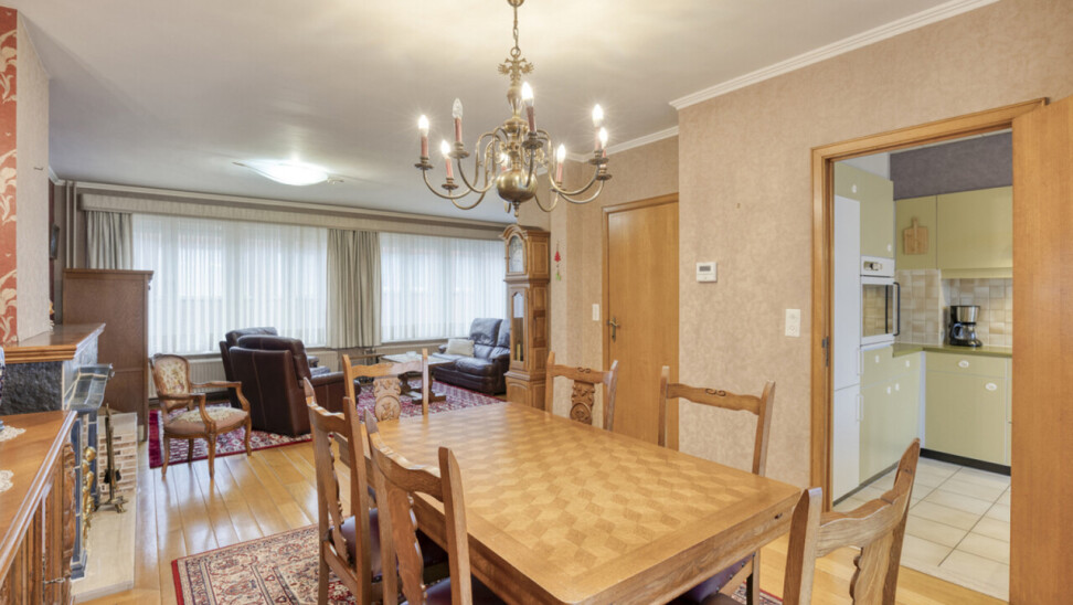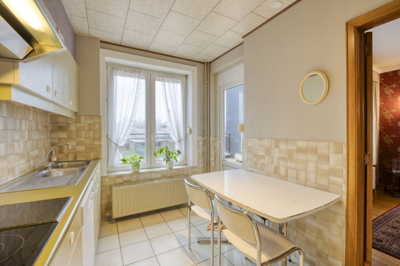 Op de eerste verdieping bevindt zich een lichtrijke living met warme parketvloer en gezellige open haard, die een aangename en huiselijke sfeer creëert. Grote raampartijen zorgen voor veel licht en een ruim gevoel. Aan de straatzijde zijn elektrische rolluiken voorzien voor extra comfort en privacy. De gesloten, volledig ingerichte keuken sluit mooi aan op de leefruimte. Zowel vanuit de keuken als de living heeft u toegang tot het terras van 26 m² met praktische berging, ideaal voor een ontbijt in de zon of een gezellige avond met familie en vrienden.
