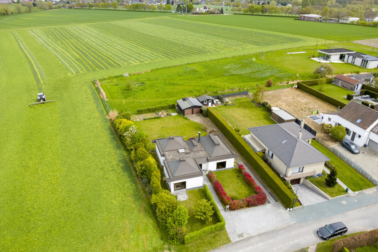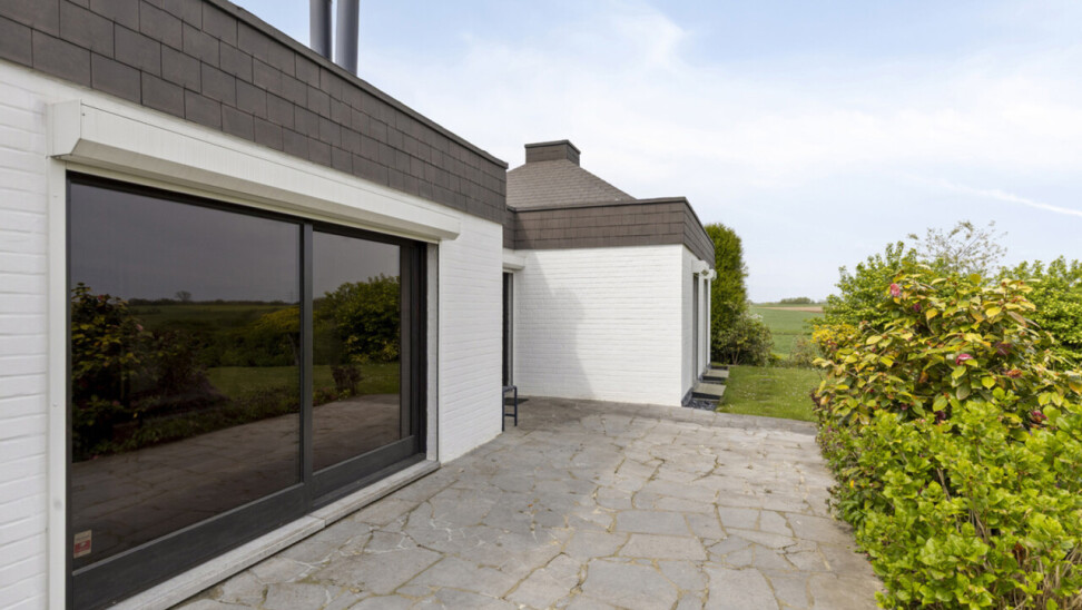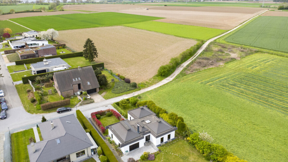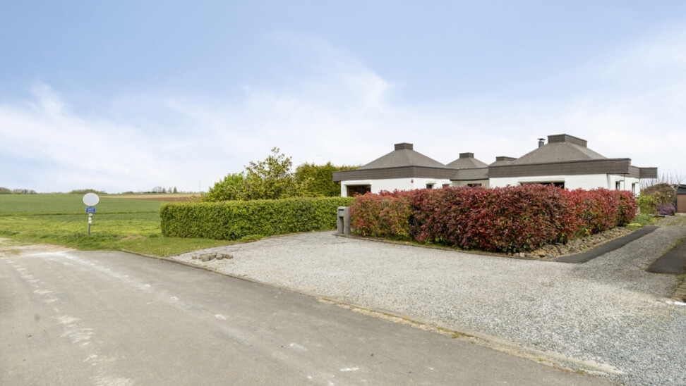 In het charmante en landelijke Relegem, waar rust en dorpsgevoel nog hand in hand gaan, bevindt zich deze zeldzame bungalowvilla met een werkelijk unieke ligging.