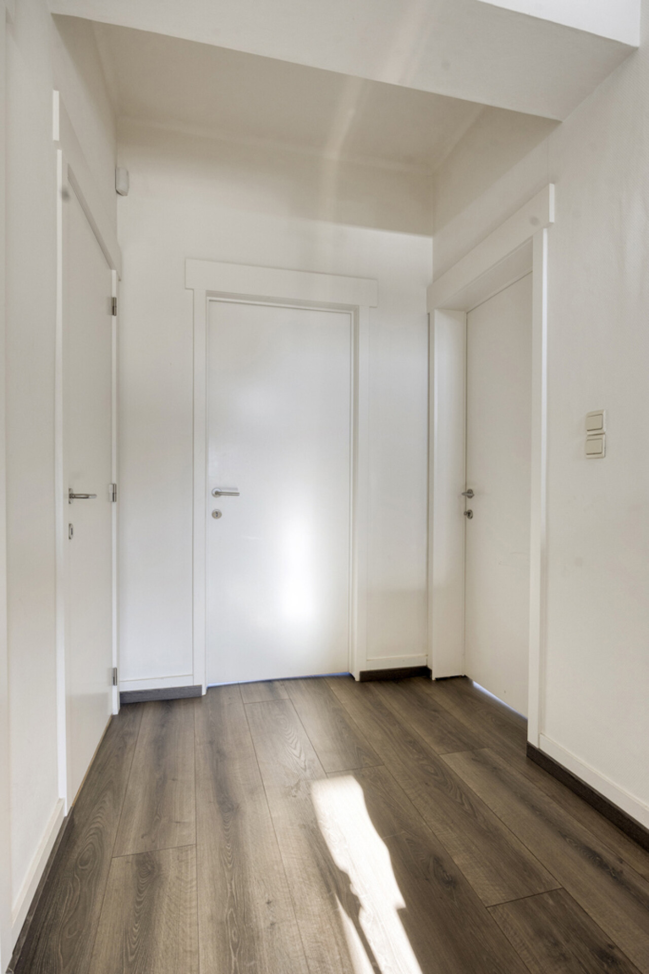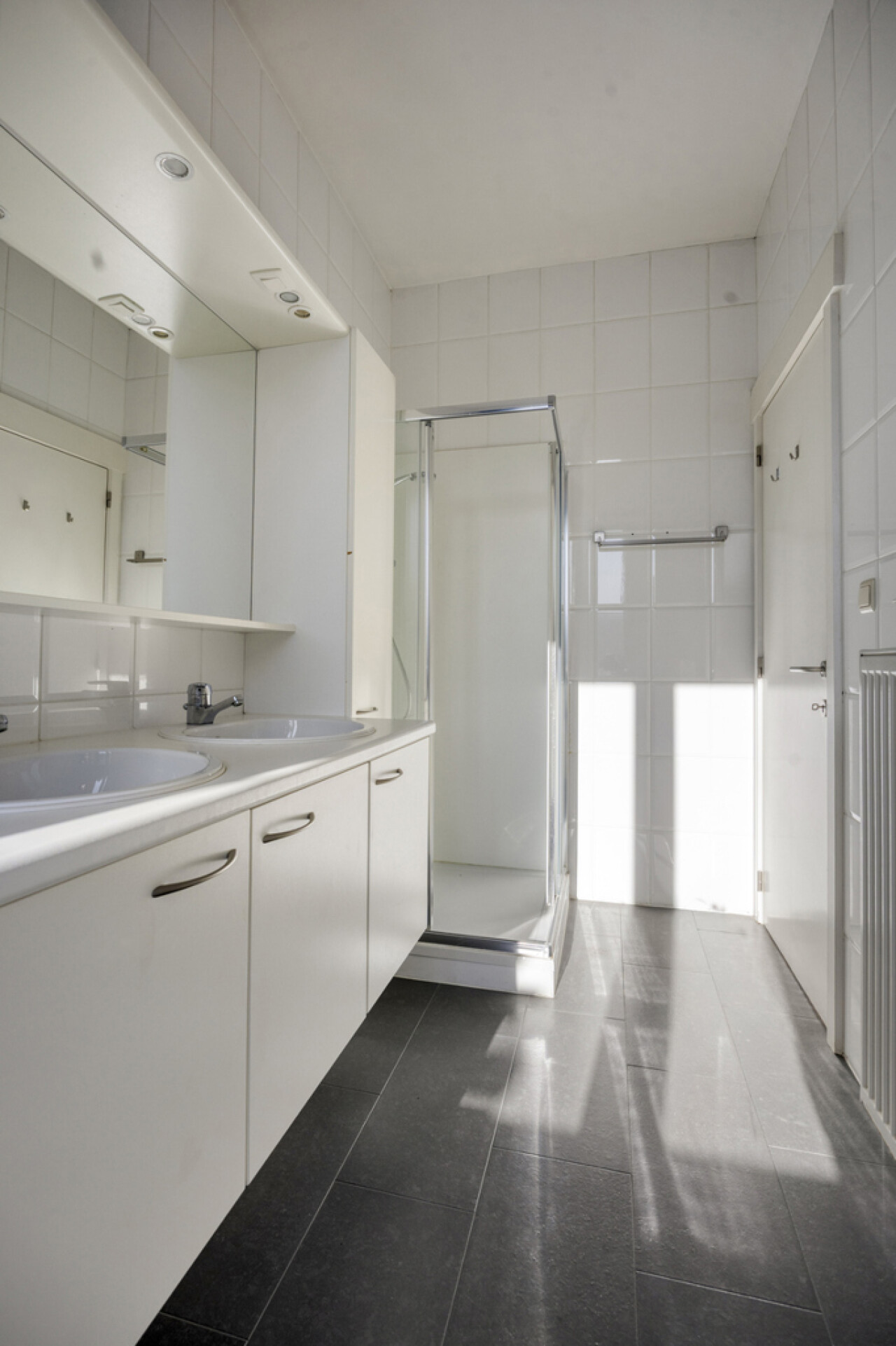 Boven bevindt zich een recent gerenoveerd duplexappartement van 156 m² met drie slaapkamers van 13 m², een volledig uitgeruste keuken en lichtrijke leefruimte. Het pand is bovendien uitgerust met airconditioning.
