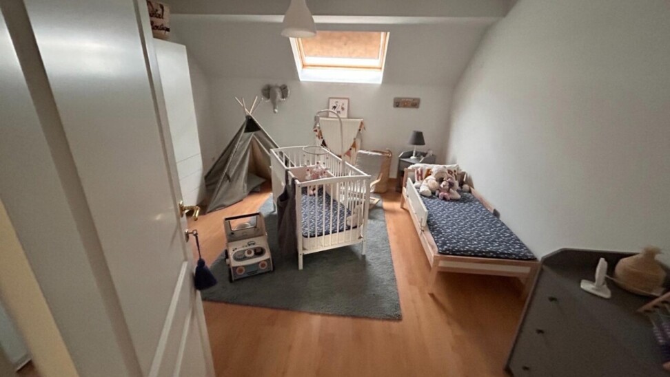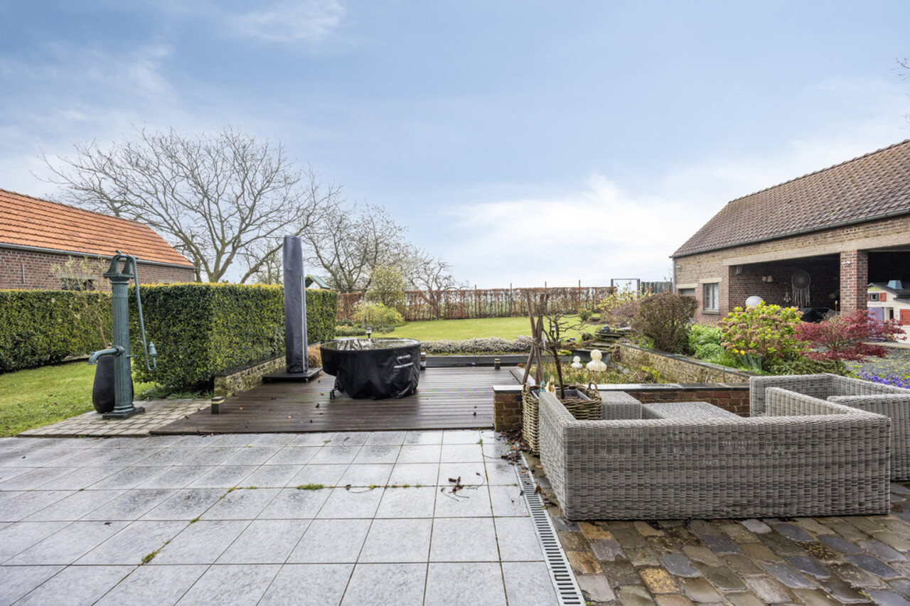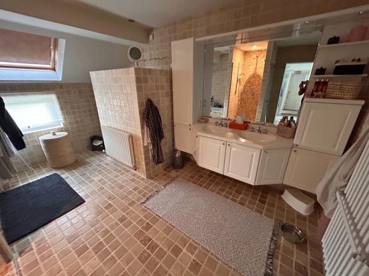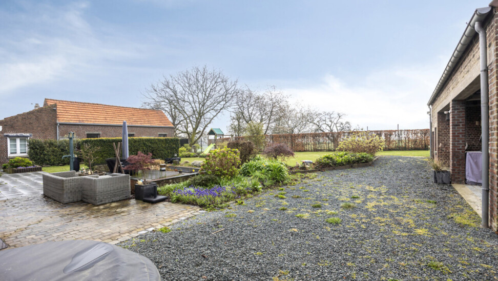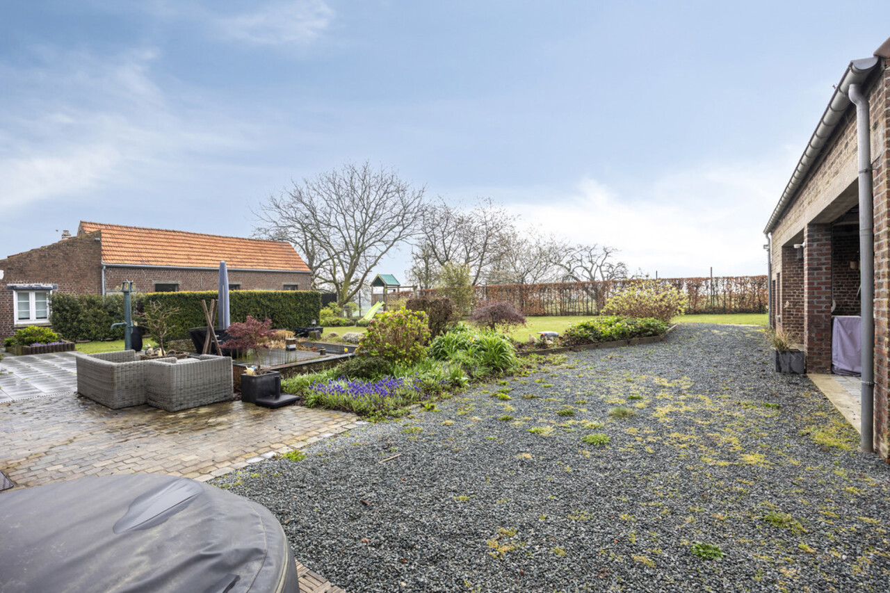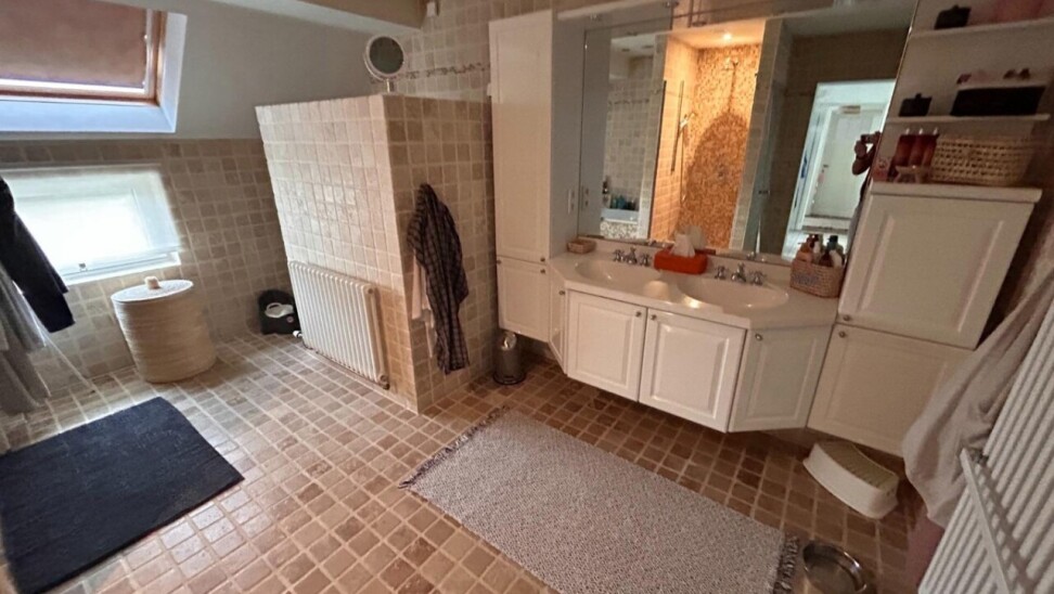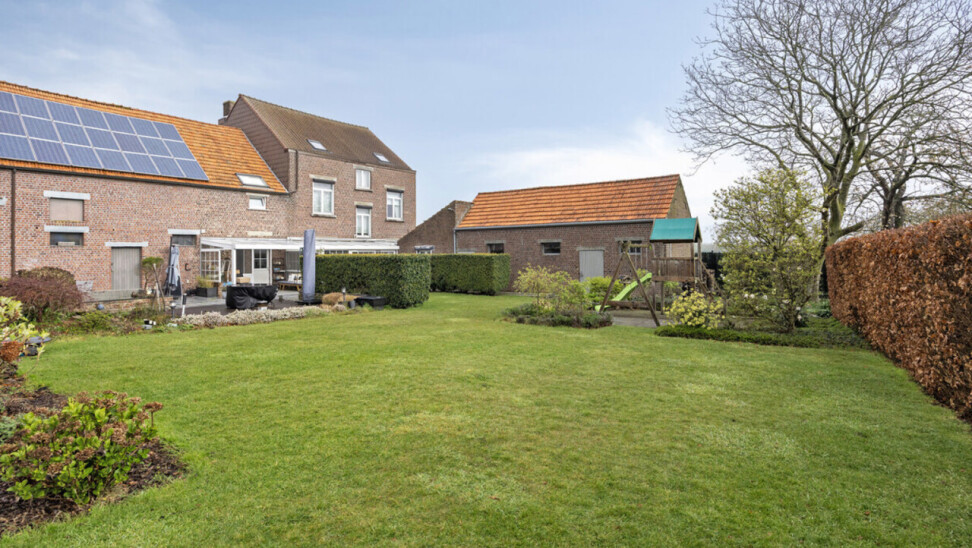Inkomhal met gastentoilet, ruime en lichtrijke leefruimte met open haard. Eetplaats met volledig ingerichte keuken die aansluit op een charmante tuinkamer. Verder is er een aparte speelkamer of bureau/praktijkruimte. Op de verdieping: 4 slaapkamers (14–20 m²), dressing (15 m²), ruime badkamer en inrichtbare zolder (60 m²) bereikbaar via vaste trap.