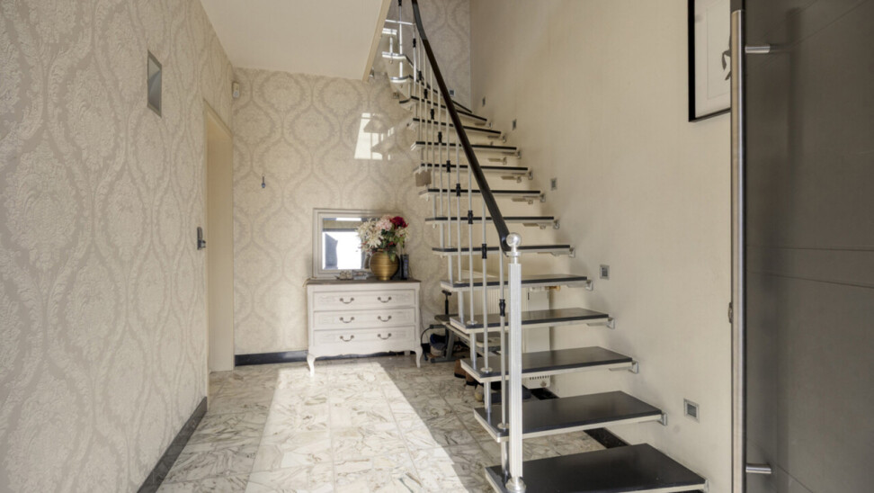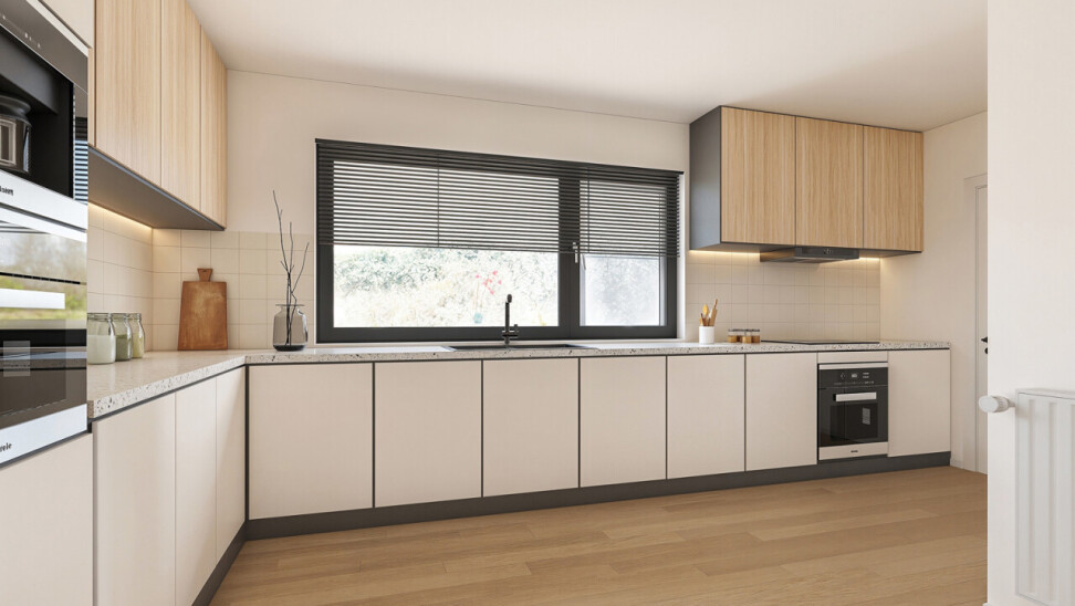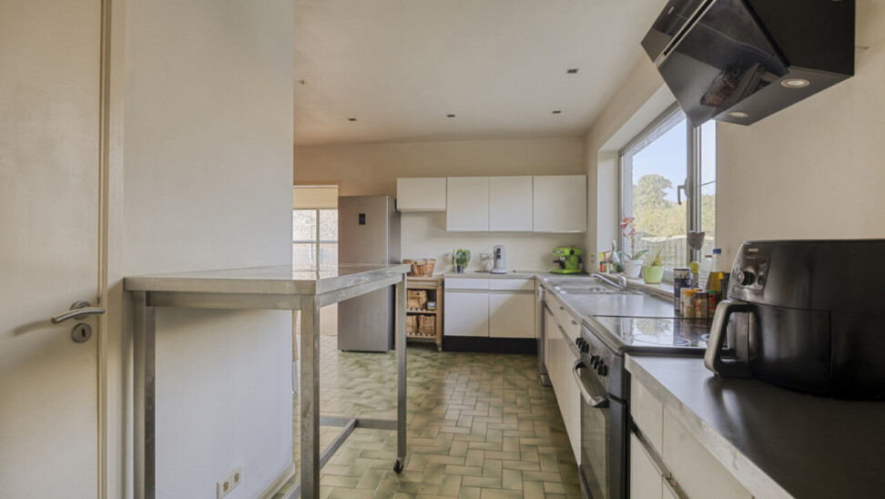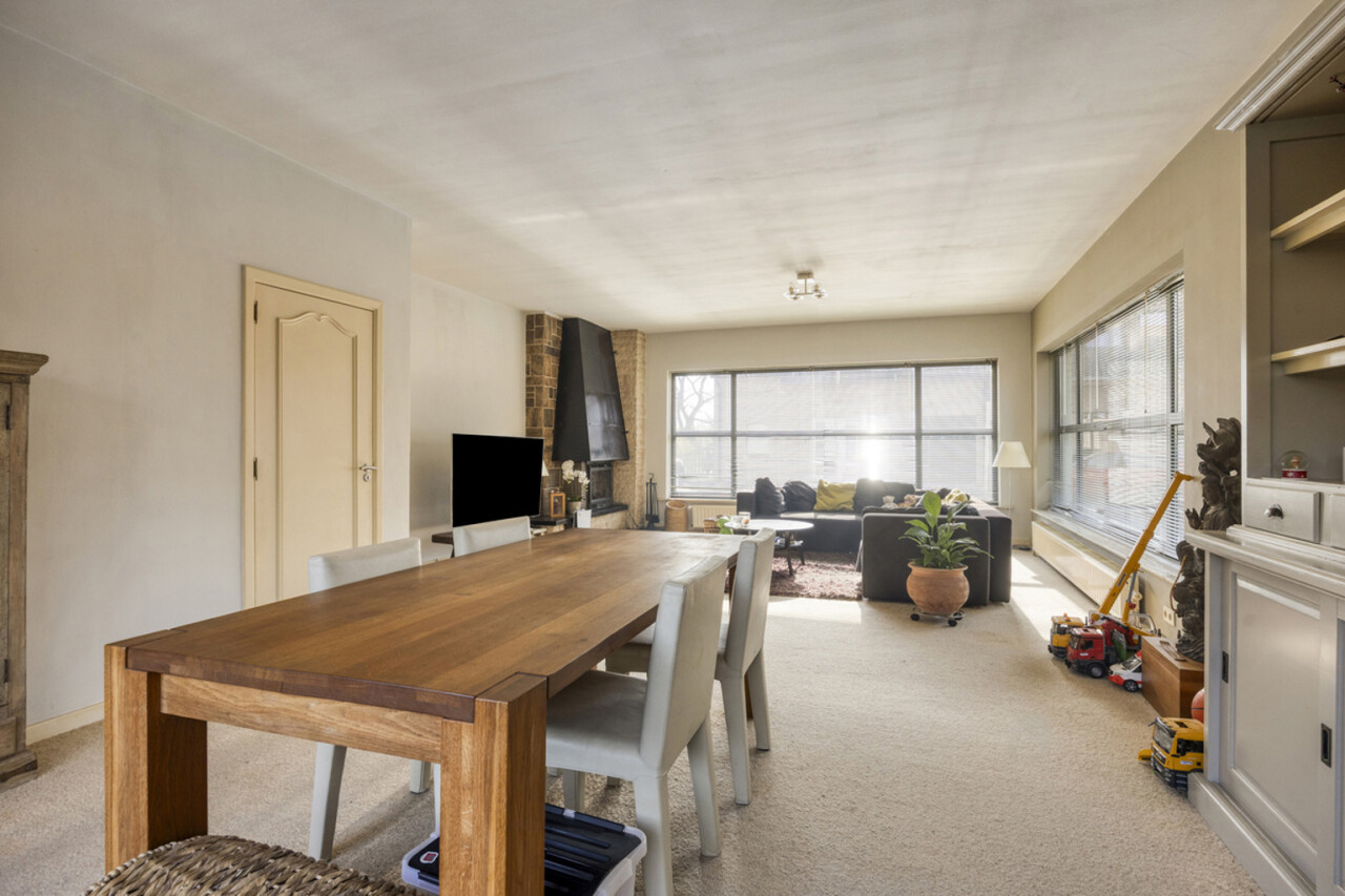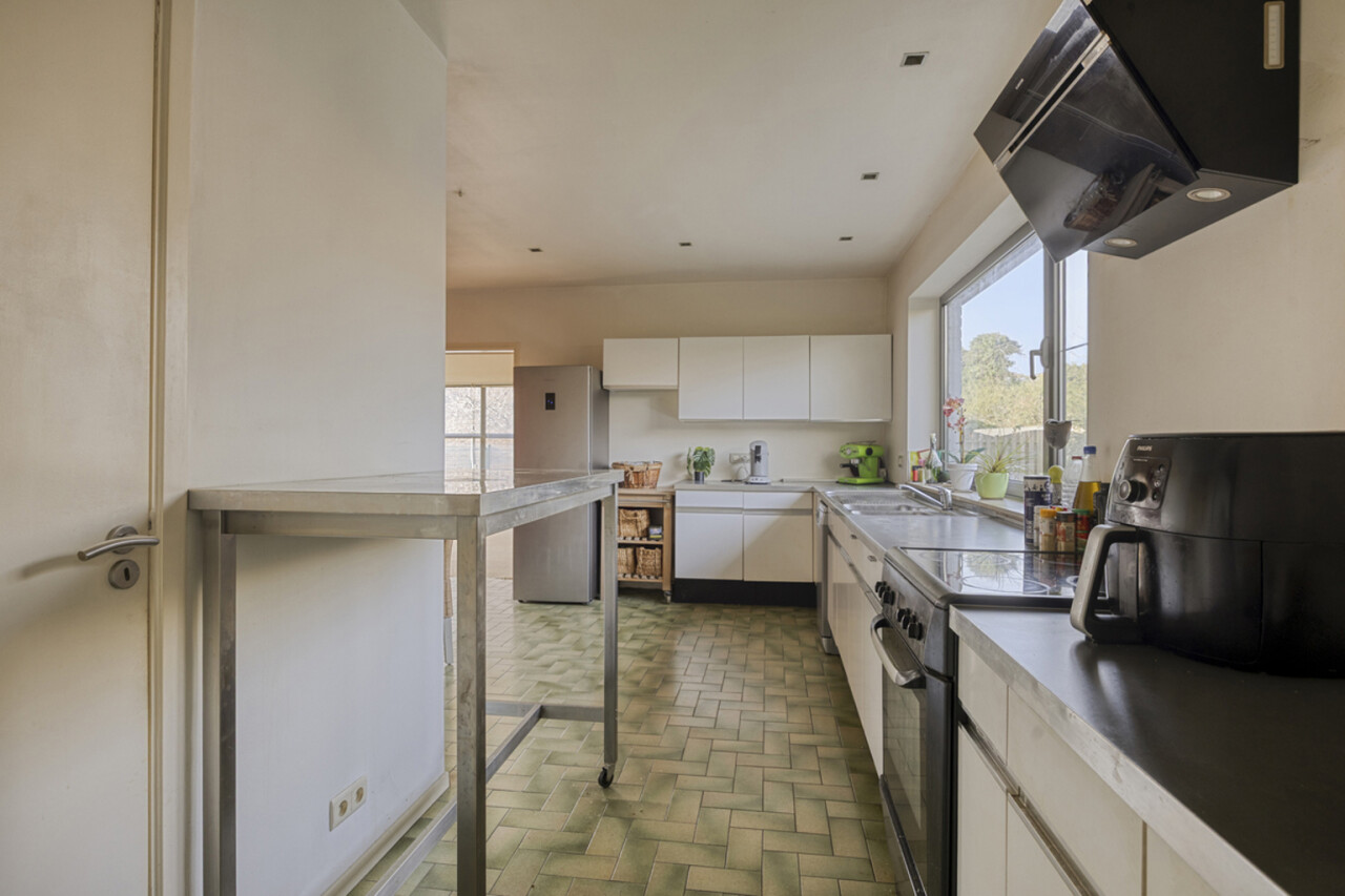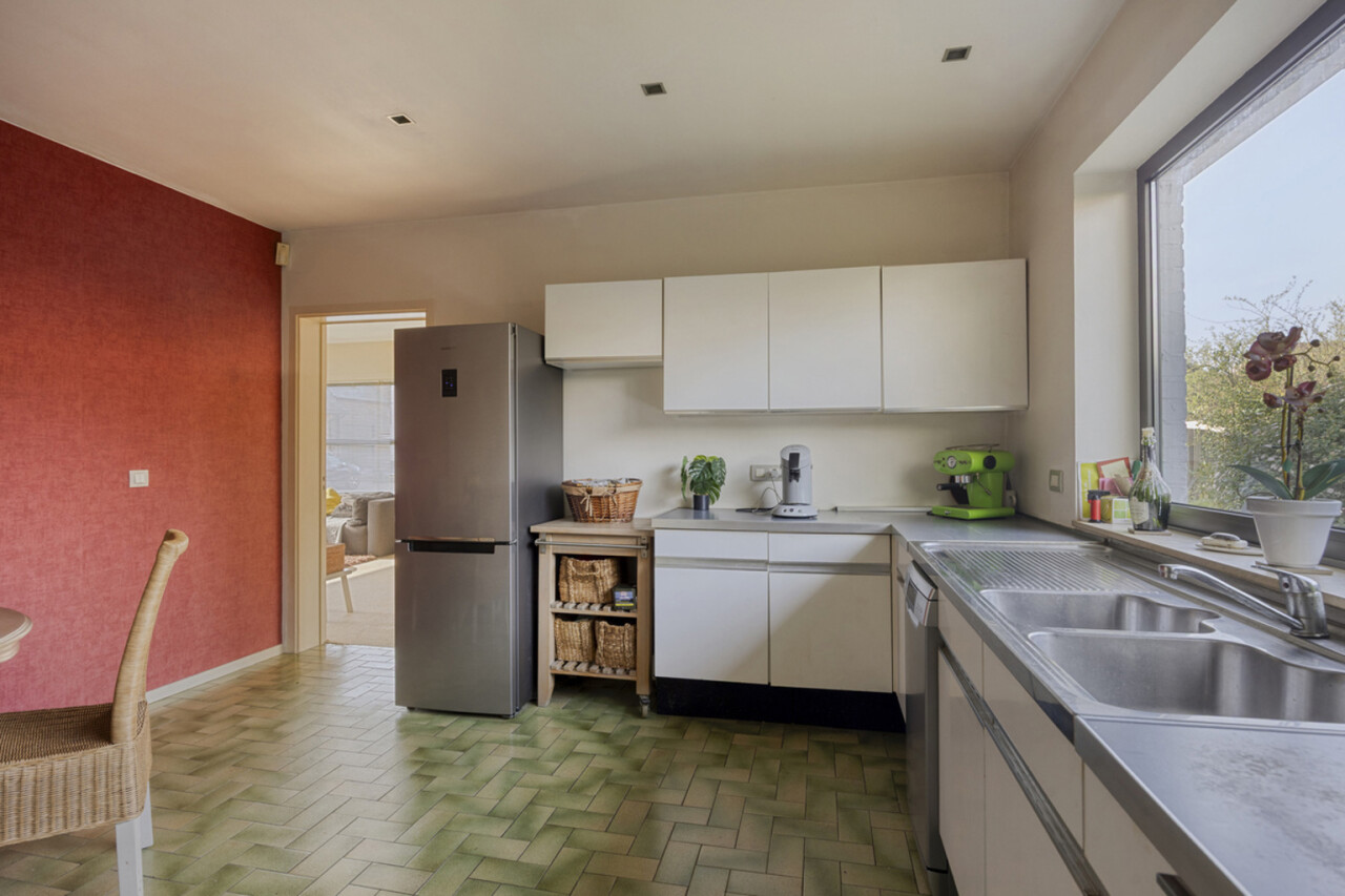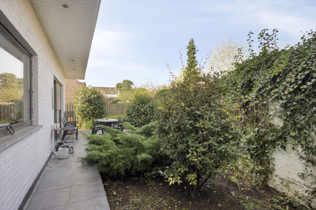 Via de inkomhal betreedt u de lichtrijke woonkamer van 58 m², voorzien van een open haard. Vanuit de living heeft u toegang tot het terras en de onderhoudsvriendelijke, zuidwestgerichte tuin, omgeven door groen. Daarnaast is er ook een uitgang naar de tuin vanuit de keuken, zodat u niet via de living hoeft te gaan met vuile voeten. De keuken staat in verbinding met de technische ruimte en een inpandige garage, praktisch om boodschappen direct uit te laden. Op het gelijkvloers bevindt zich tevens een toilet. Een extra troef is de aparte, niet-inpandige garage van 16 m² die kan dienen als opslagruimte.