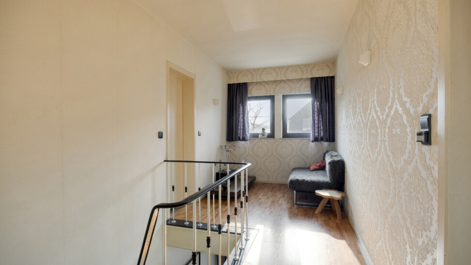 Op de eerste verdieping bevindt zich een ruime overloop die perfect kan worden ingericht als bureelhoek of speelhoek voor kinderen. Verder beschikt de woning over drie zeer ruime slaapkamers van elk circa 20 m² en een badkamer met extra toilet. Vanuit één van de slaapkamers is de zolder bereikbaar.