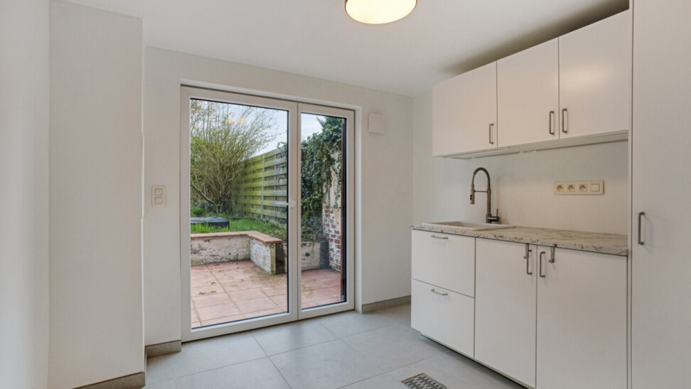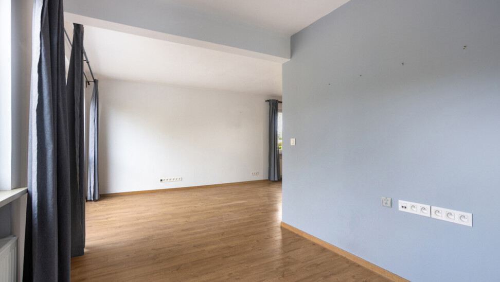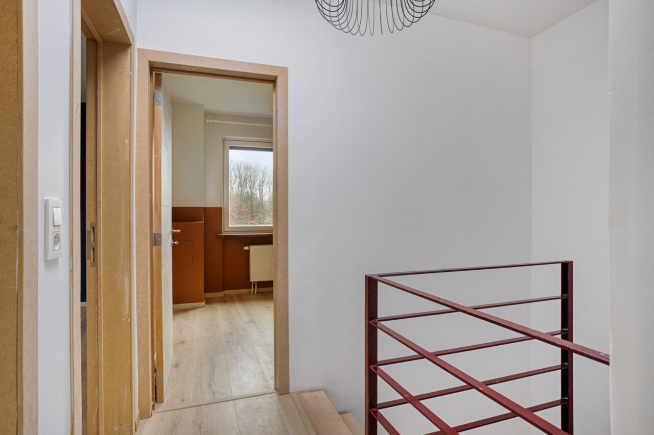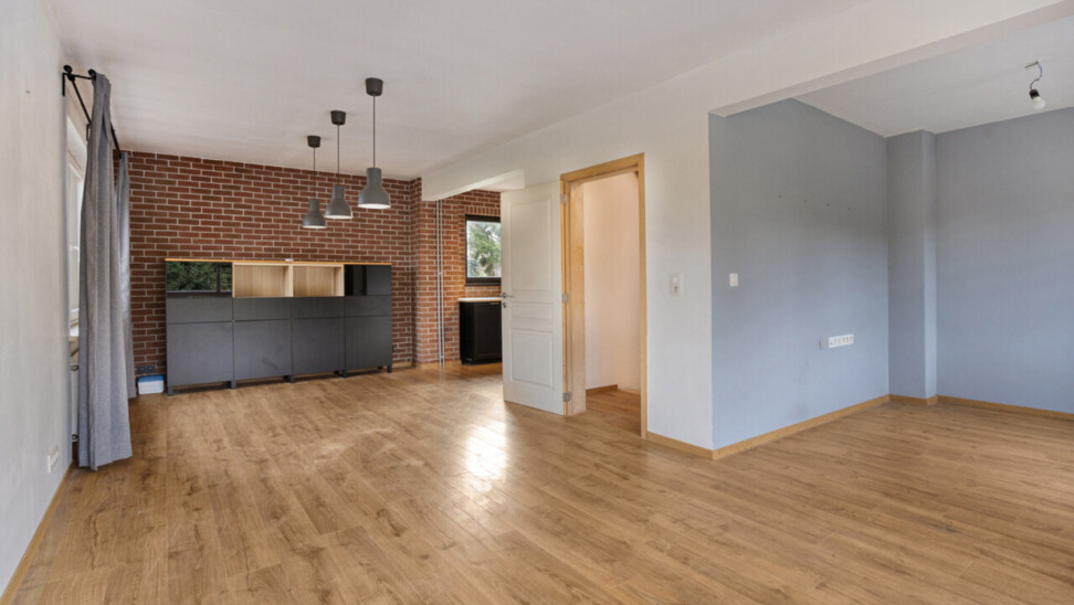 mmo DAVID stelt een volledig gerenoveerde driegevel bel-etage voor, gelegen in een rustige wijk op een toplocatie. Dankzij de drie gevels geniet de woning van veel natuurlijke lichtinval. De inkomhal heeft een apart toilet en biedt toegang tot de garage en de wasberging, van waaruit je ook de fraai aangelegde tuin met terras bereikt. Achteraan geen buren en een weids uitzicht. De tuin is omheind en daardoor veilig voor kinderen en huisdieren. Voor de woning zijn er twee staanplaatsen. Op het eerste verdiep bevindt zich een lichtrijke living met open, volledig ingerichte keuken. Het tweede verdiep telt drie slaapkamers van 8, 11 en 13 m² en een ingerichte badkamer met toilet. De woning werd in 2018 volledig gerenoveerd: nieuwe ramen, loodgieterij, sanitair en elektriciteit,binnenmuur van de voorgevel en dak geïsoleerd, vloeren op het gelijkvloers eveneens geisoleerd. Overal zijn muggenhorren geplaatst.Er is eveneens een videofoon. De betonnen gewelven garanderen een sterke constructie. Er zijn zonnepanelen en een thuisbatterij aanwezig, wat zorgt voor een gunstig EPC (B). De ligging is ideaal: nabij het centrum van Zellik, de Ring, scholen, winkels, Laerbeekbos, fietssnelweg en het centrum van Brussel, met goede bereikbaarheid via openbaar vervoer.