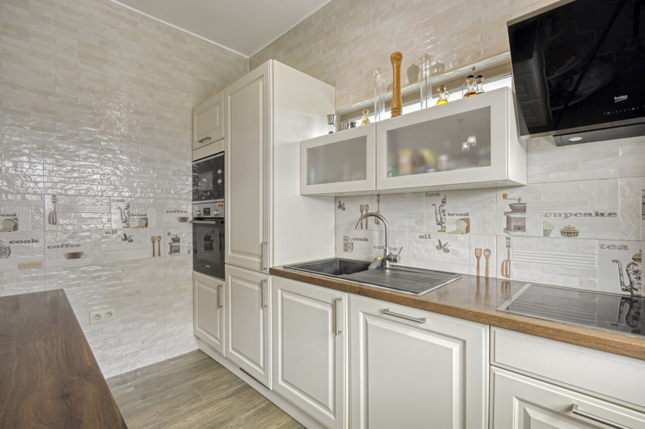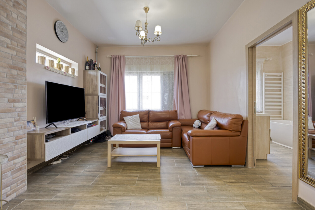 De woning verwelkomt u met een lichtrijke leef- en eetruimte van 29 m², afgewerkt met een stijlvolle steenparketvloer die meteen warmte en gezelligheid uitstraalt. Aansluitend bevindt zich een semi-uitgeruste keuken (7 m²) met directe toegang tot het terras, ideaal voor ontspannen momenten buiten.