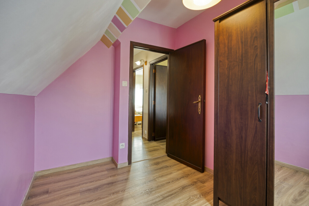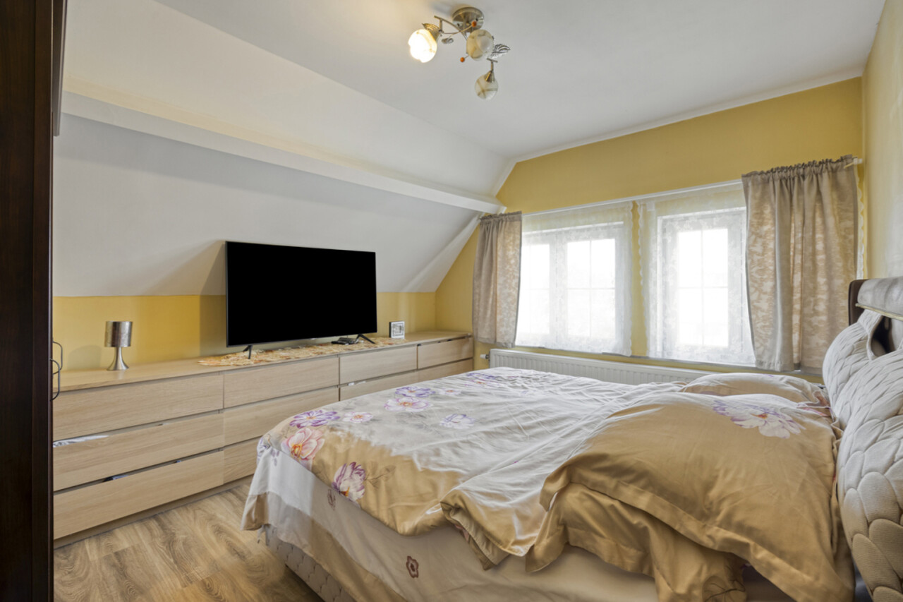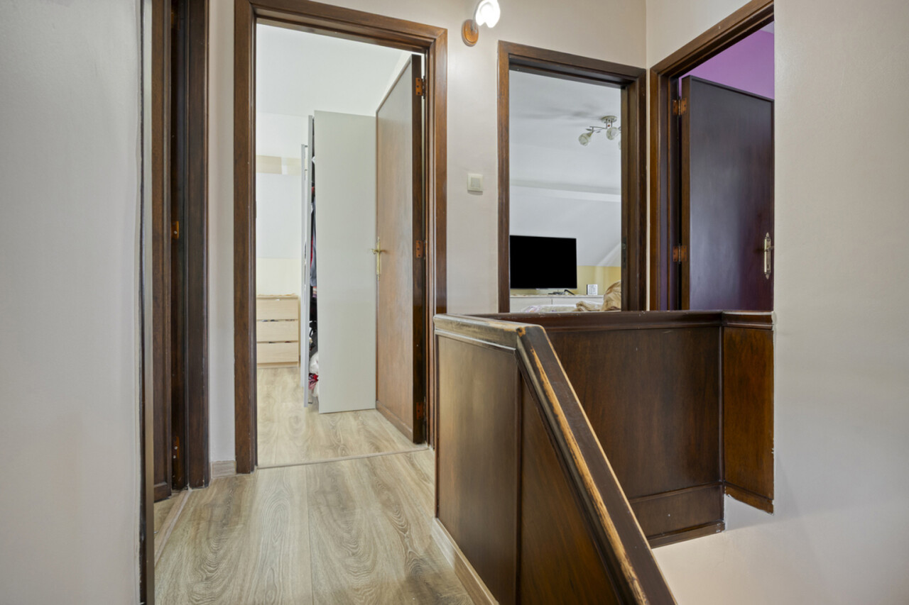 De eerste verdieping omvat vier slaapkamers (15 m², 14 m² en twee van 7 m²), perfect geschikt voor een gezin of combinatie met bureau- of hobbyruimte.