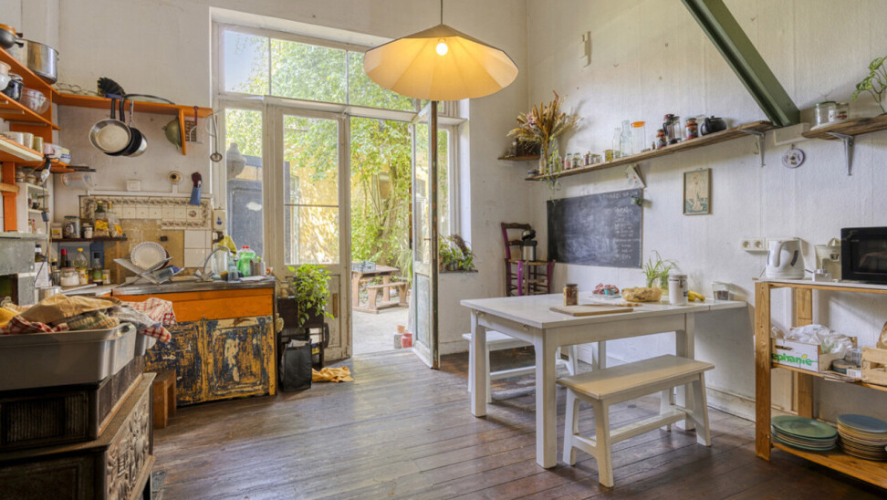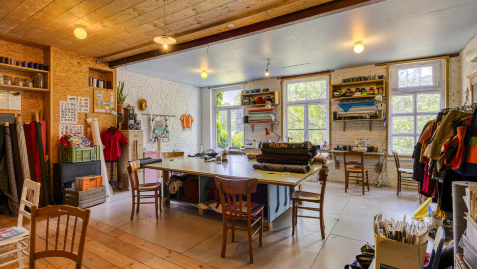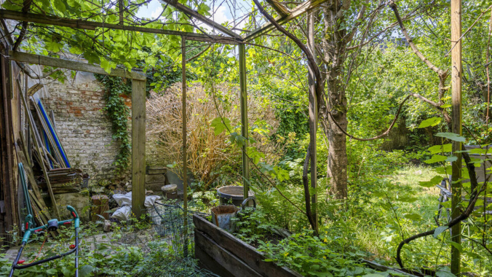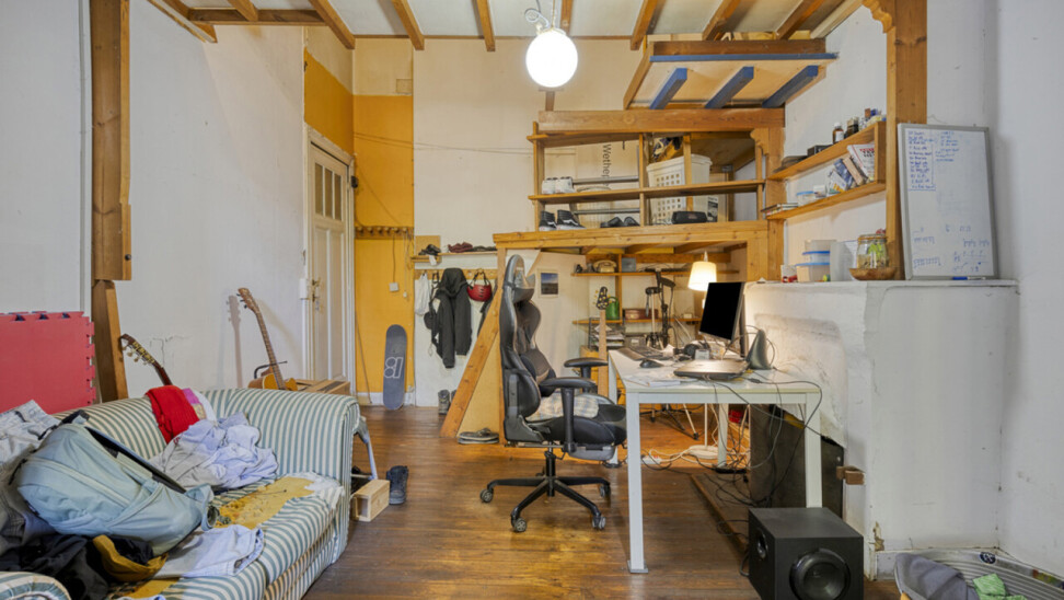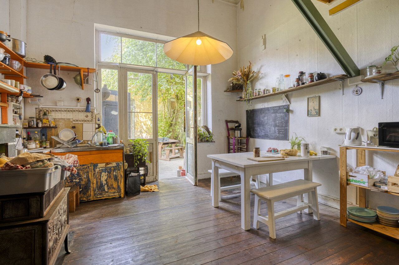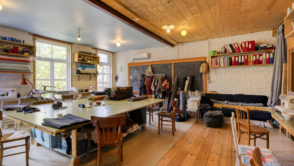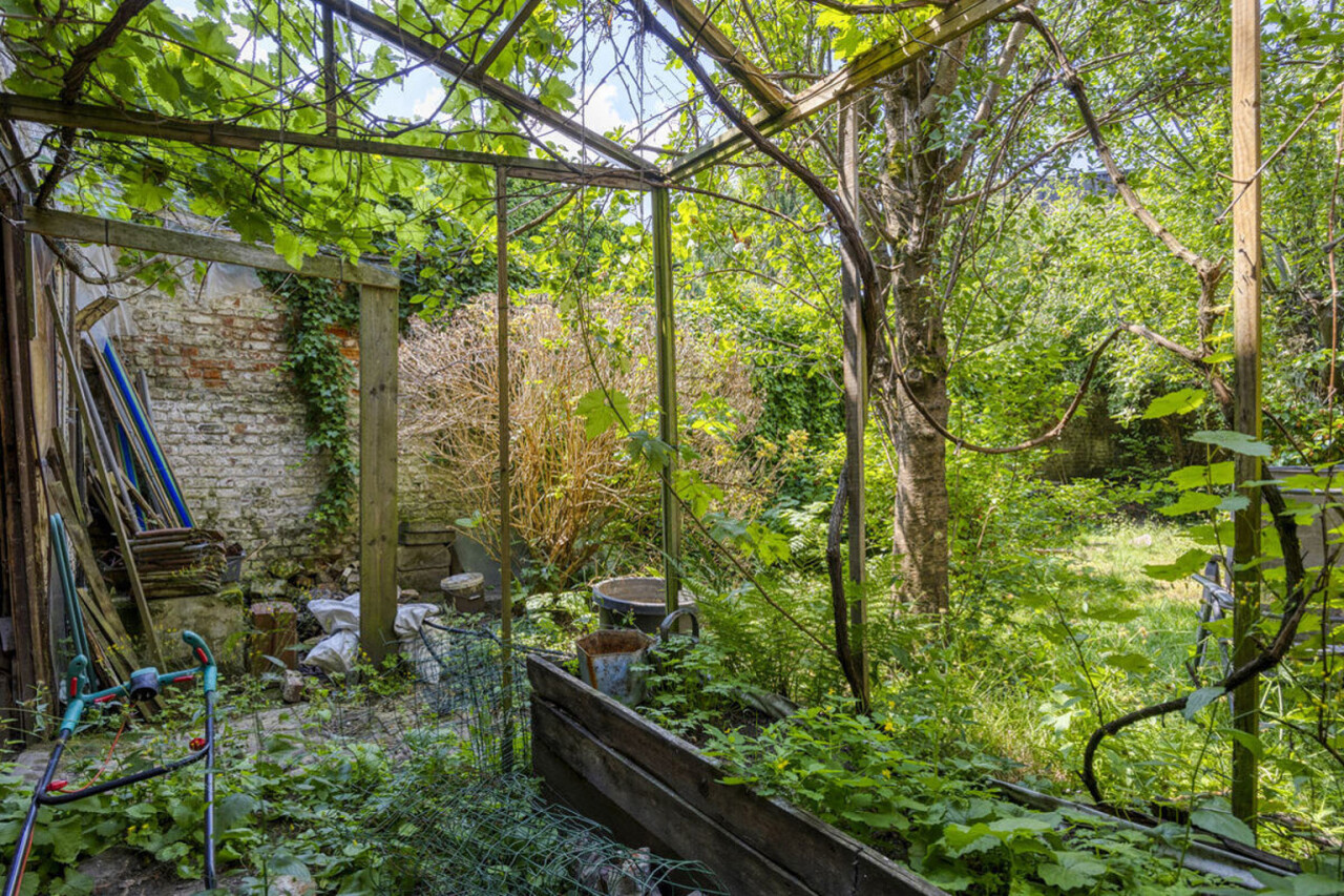 Werkplaats achterin hoofdgebouw gelegen. Indeling: bestaande uit 3 niveau's: tuinniveau (-1) (+/- 64m²), straatniveau (+/- 64m²) en zolderniveau (+/- 50m²).