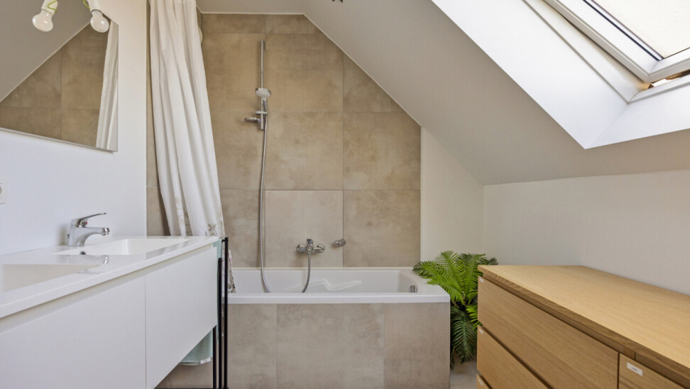 Via een vaste trap bereik je de bovenverdieping, waar je een nachthal vindt die leidt naar drie extra slaapkamers. Daarnaast is er een stijlvolle badkamer, een bureauruimte en nog een handige berging. De vaste trap brengt je vervolgens naar een volledig ingerichte zolder, die perfect kan dienen als extra leefruimte of opslag. Buiten geniet je van een gemeenschappelijke tuin, ideaal om te ontspannen.